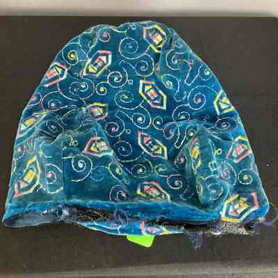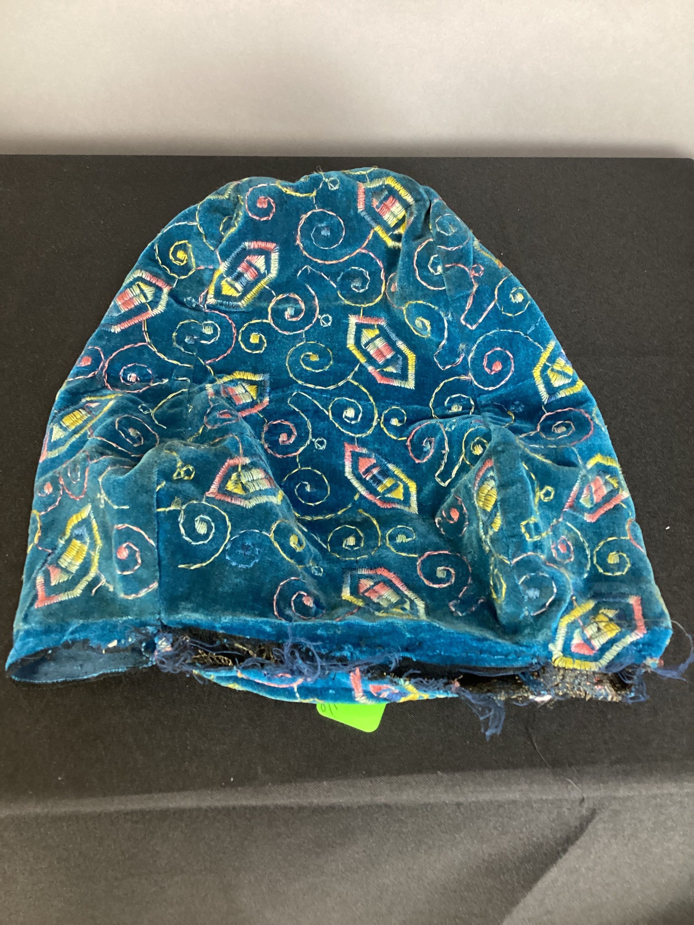 Teal velvet cloche w/ brim. All soft-shaped, no lining. Brim need to be resewn.