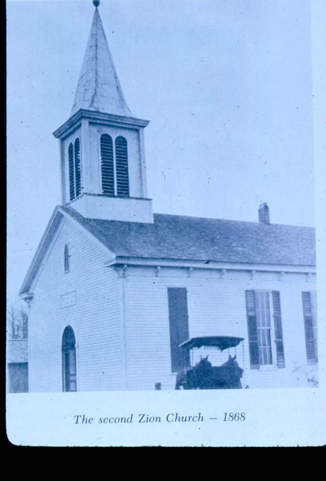 Black and white photographic slide in portrait format. Slide frame is marked: "First Zion Church