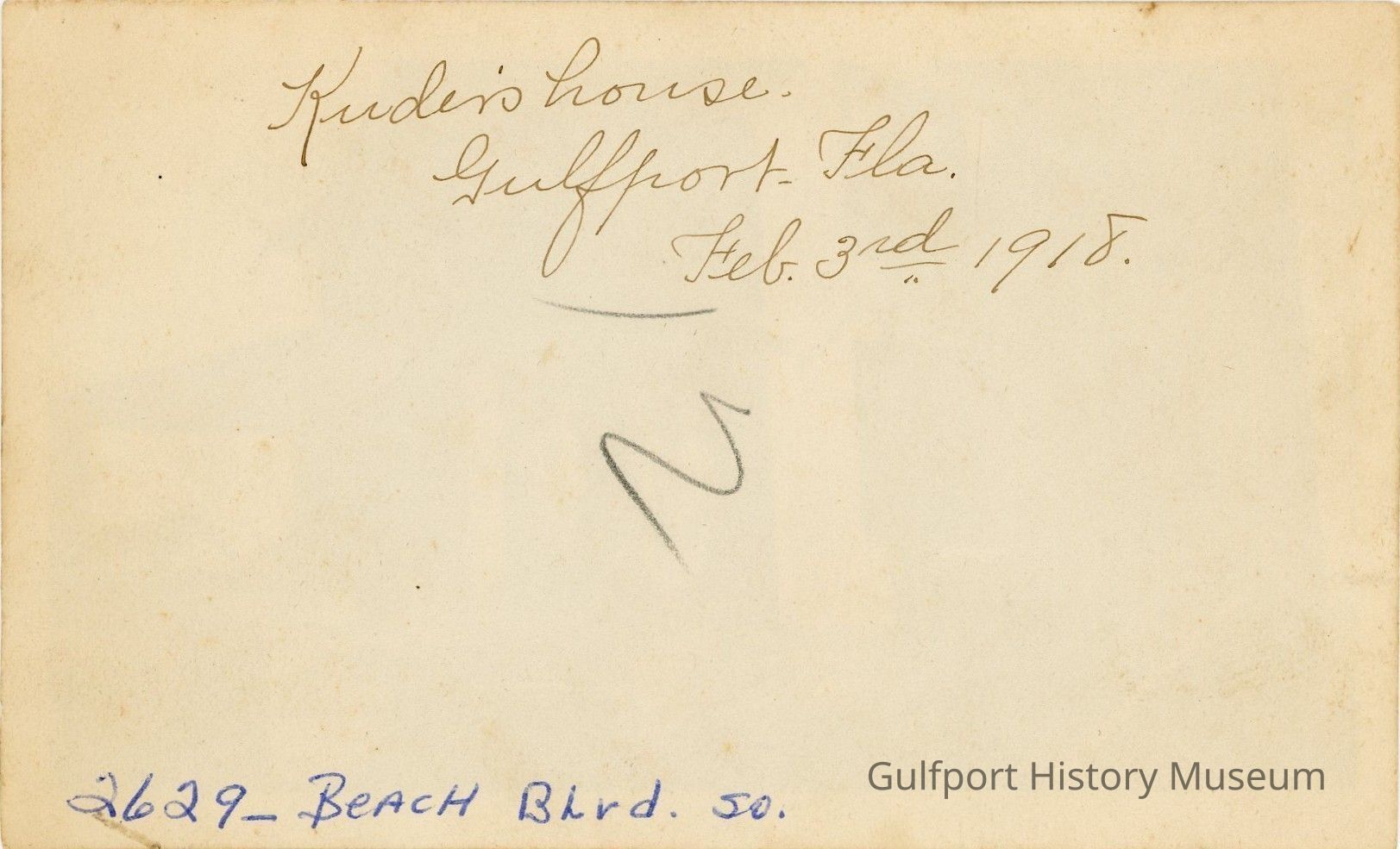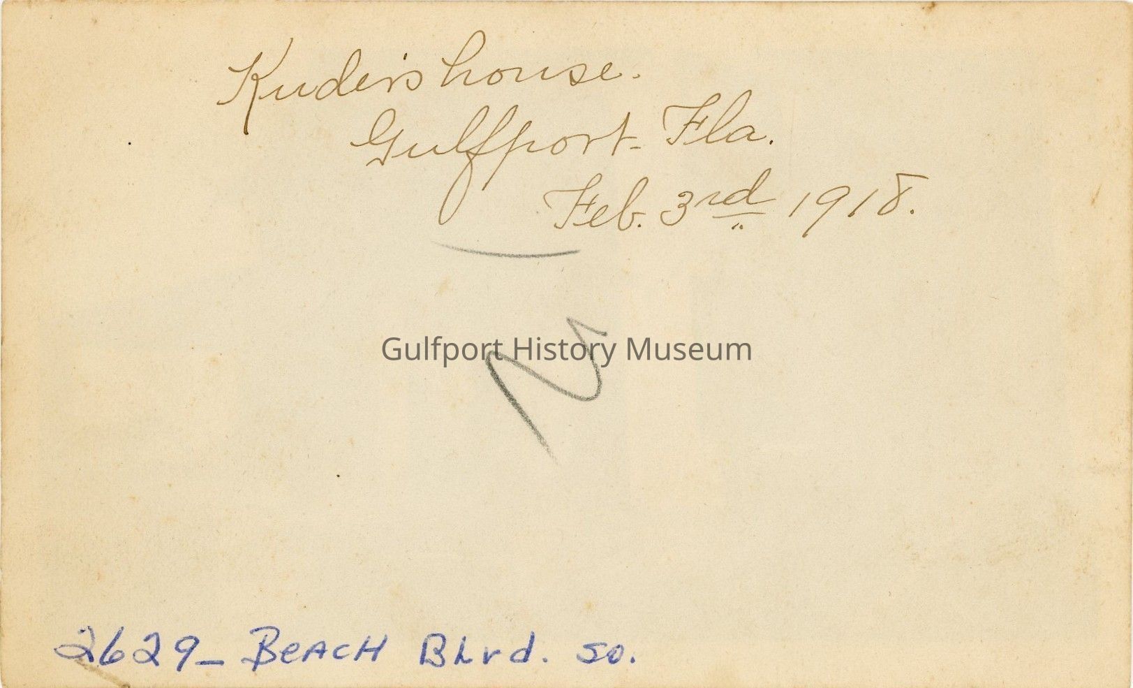 Kuder's house. Gulfport, Fla. Feb 3rd 1918. 2629 Beach Blvd. So.