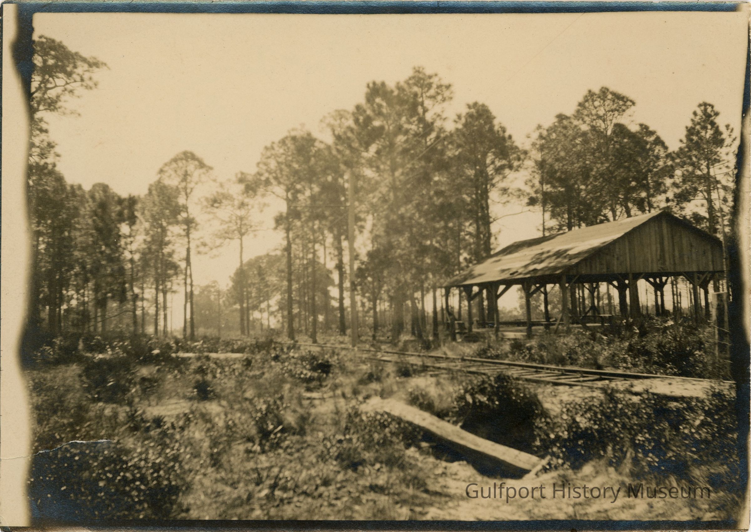 "According to a handwritten note on the back of this photograph, this building was the "colored people's dance pavillion [sic], located along "Alligator Promenade" (probably the Lakeview Avenue or Gulfport Boulevard of later times)."