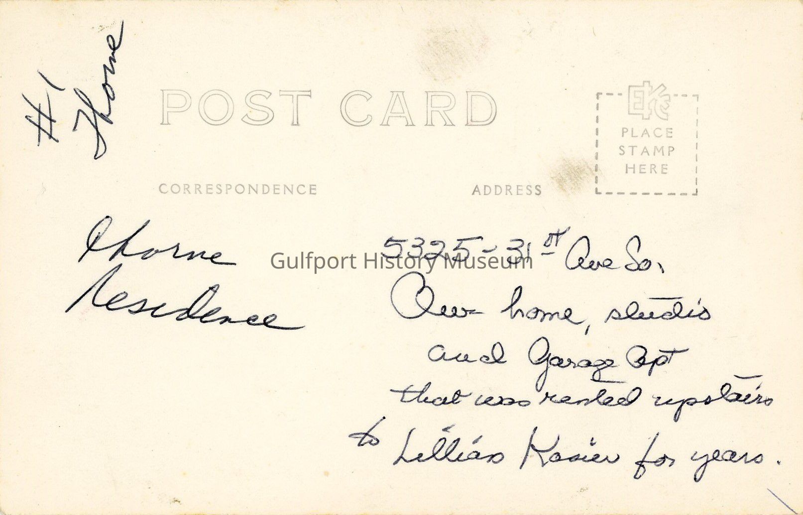 Houses--Florida--Gulfport--1930-1950, Architecture, Photography--Studios and dark rooms, PhotographersSubject Person/Organization