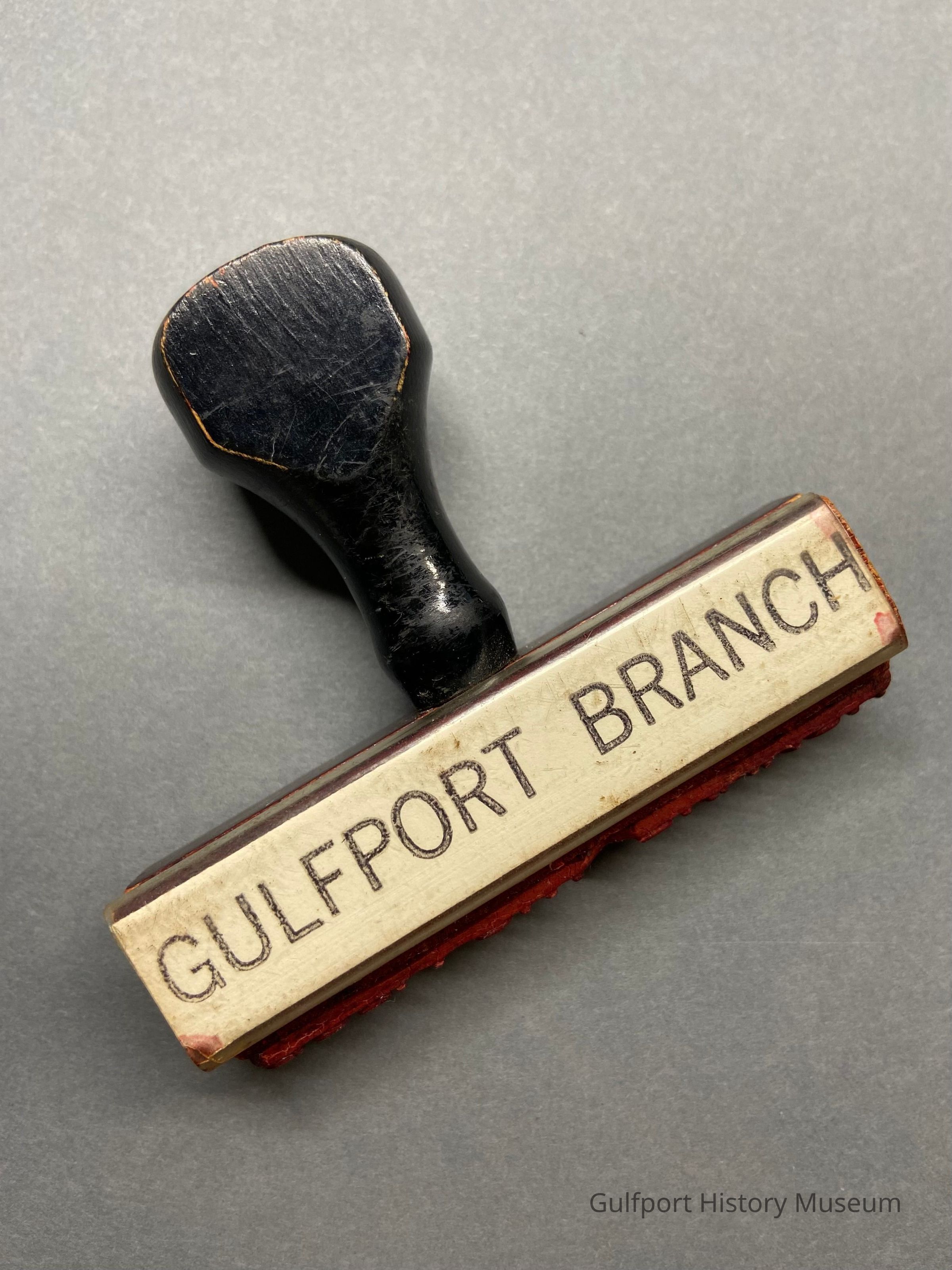 A wooden handle rubber stamp. "GULFPORT BRANCH"