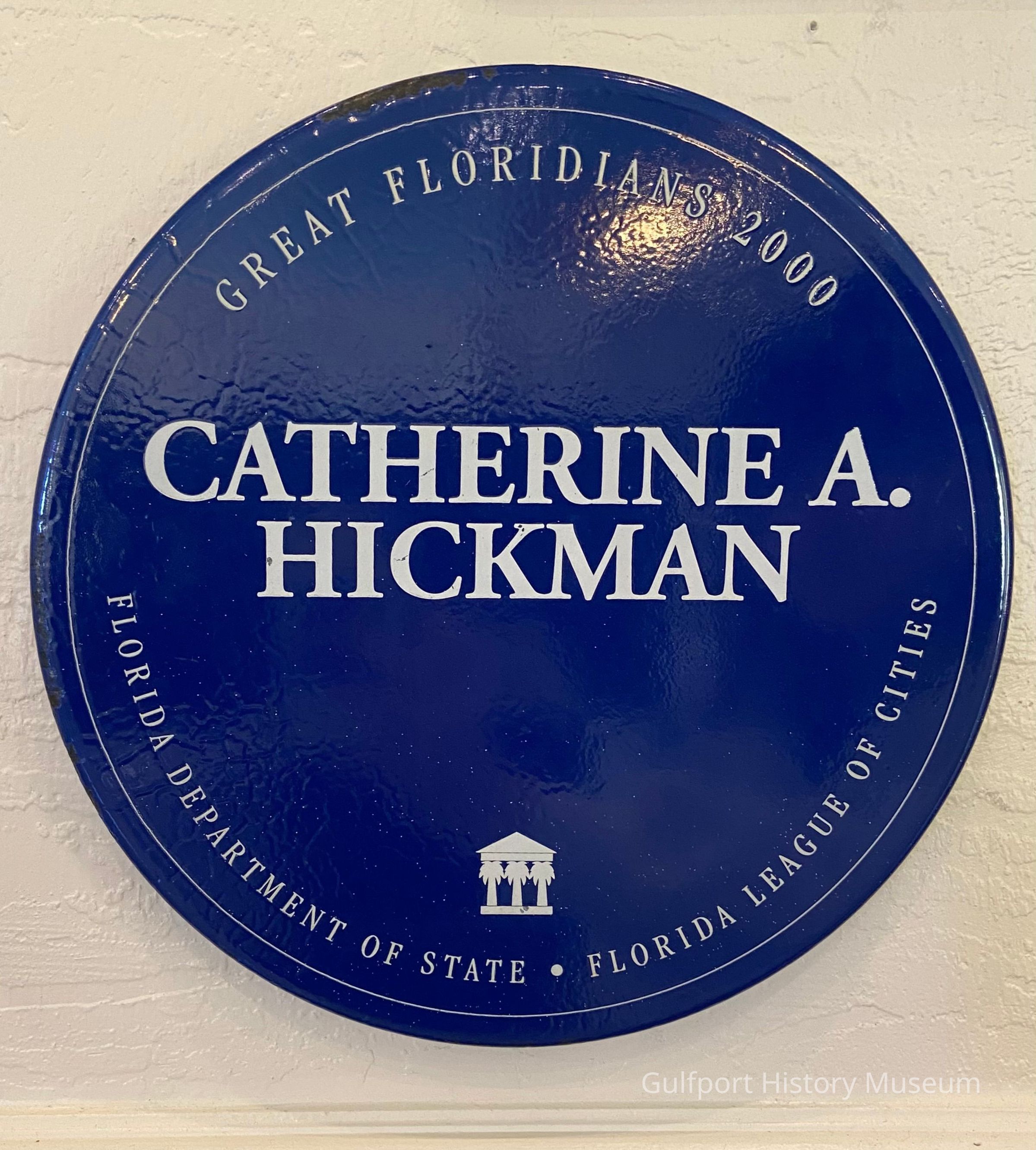 A circular blue Great Floridians 2000 award plaque presented to Catherine A. Hickman.Acquisition