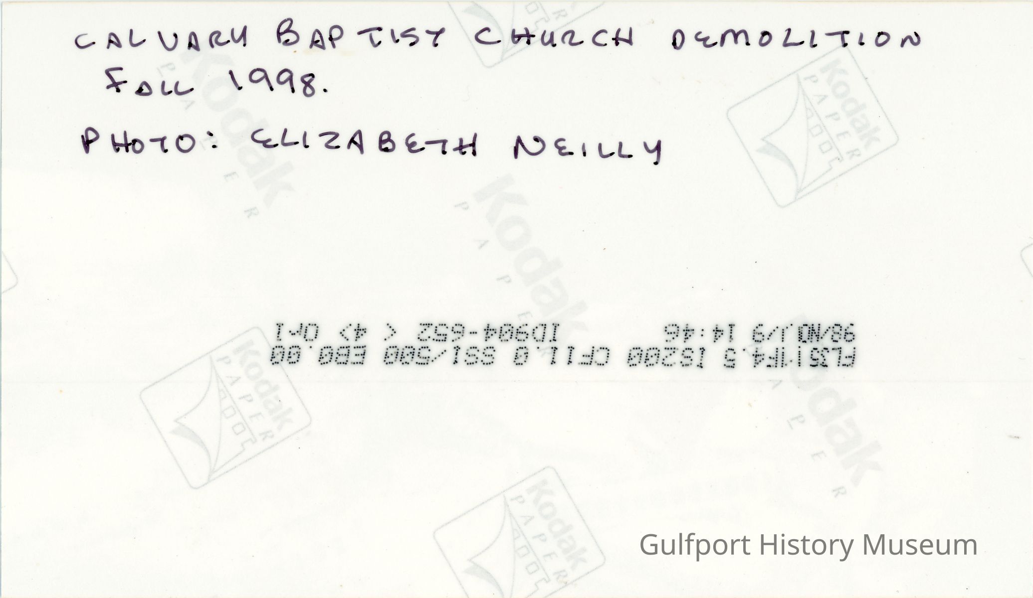 Church buildings--Florida--Gulfport, Demolition, Construction vehicles at workSubject Person or Organization
