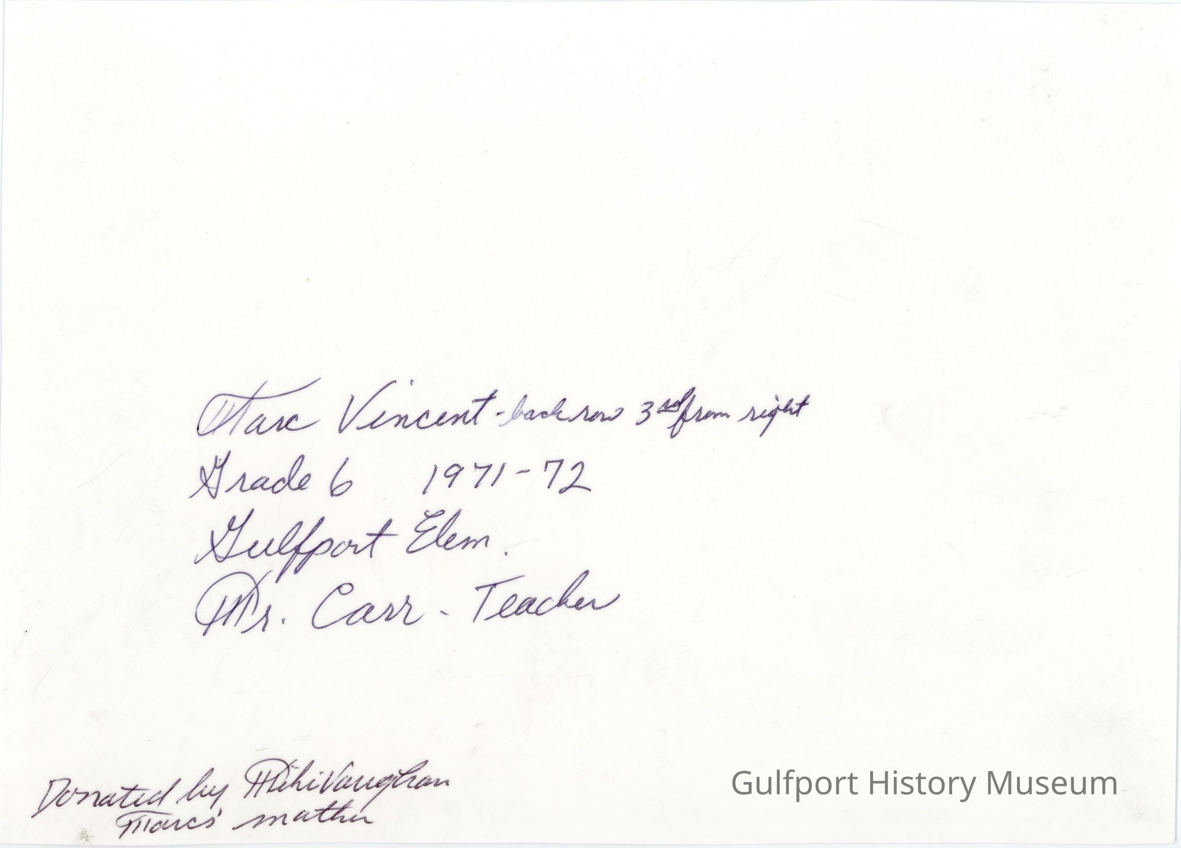 A color photographic print of Mr. Carr's sixth grade class for the 1971-1972 school year at Gulfport Elementary School.Photograph Details