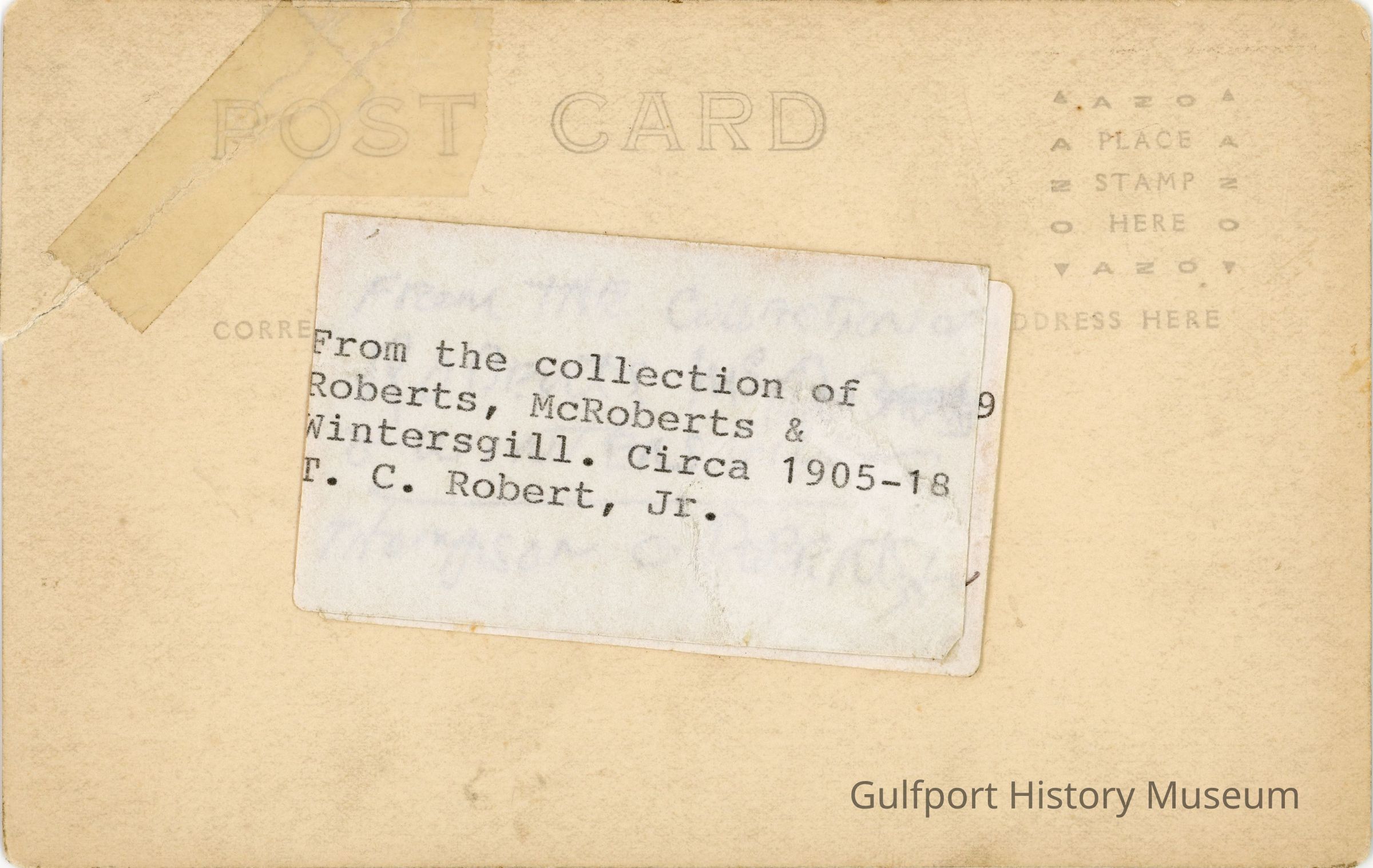 From the collection of / Roberts, McRoberts & / Wintersgill. Circa 1905-18 / T. C. Robert, Jr. / Thompson C. Roberts, Jr.Transcriber