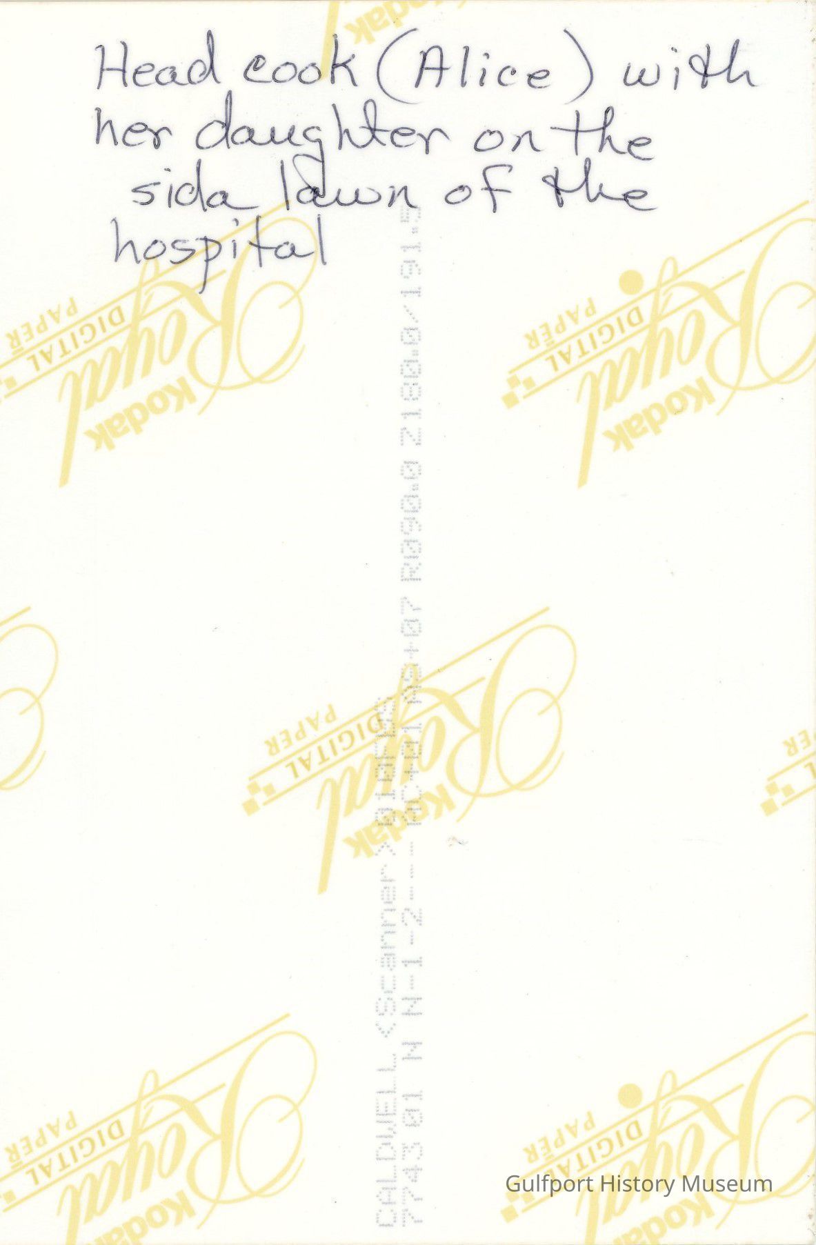 Head cook (Alice) with her daughter on the side lawn of the hospital