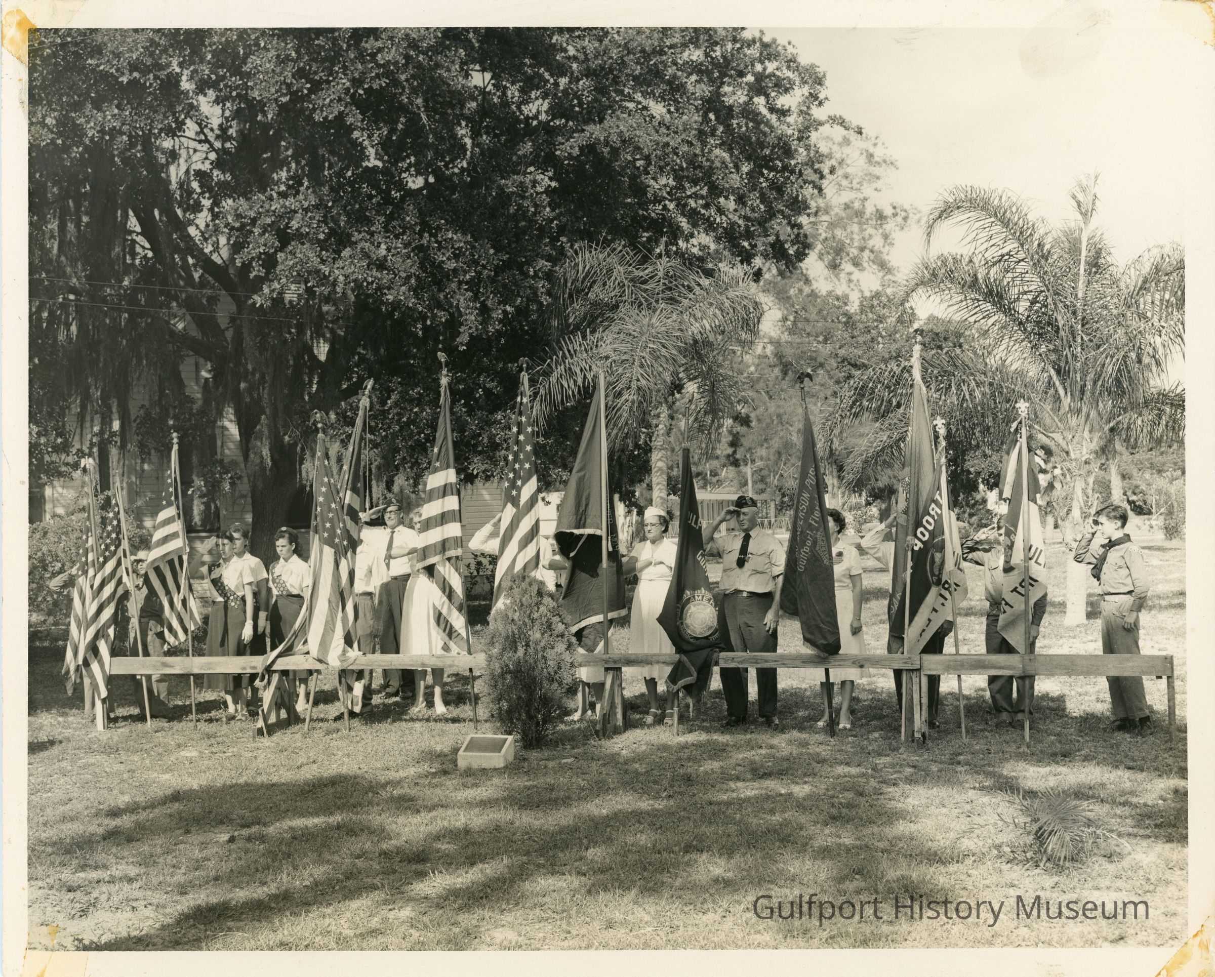 Community centers, Fashion--1950-1960, Uniforms, Flags, DedicationsSubject Person or Organization