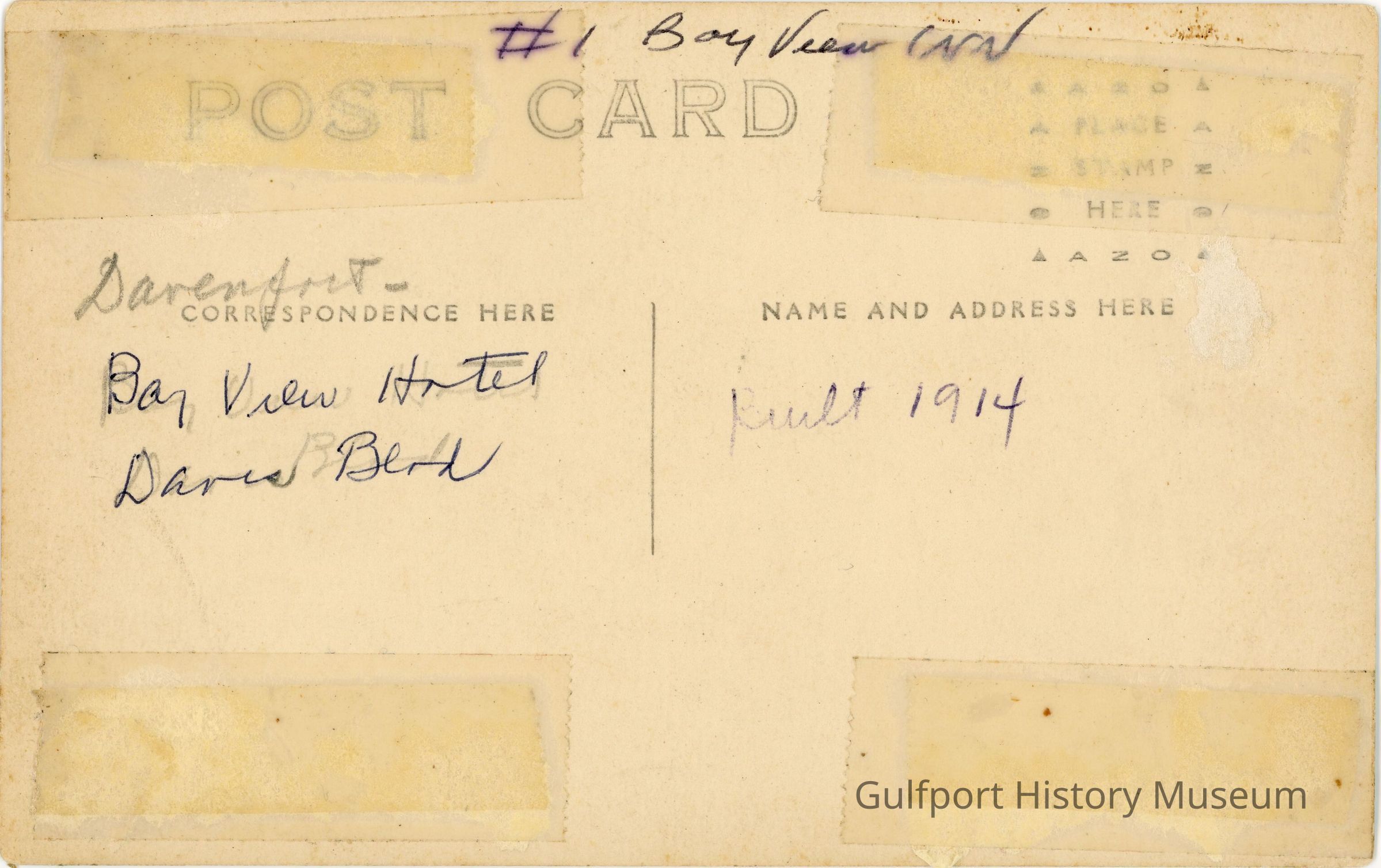 #1 Bay View Inn / Davenport- / Bay View Hotel / Davis Blvd / Built 1914Transcriber