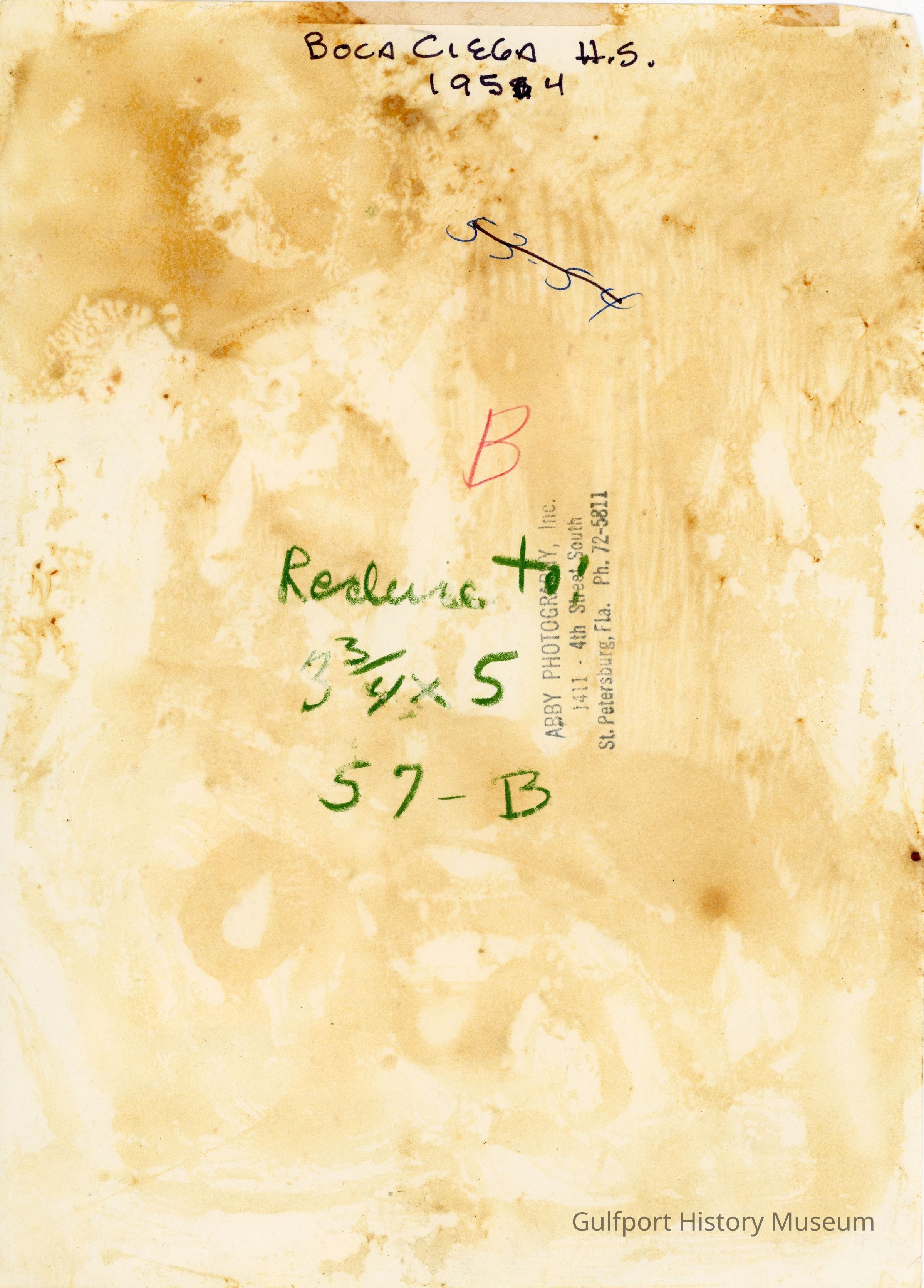 BOCA CIEGA HS 1954 ABBY PHOTOGRAPHY, Inc. 1411 - 4th Street South St. Petersburg, Fla. Ph. 72-5811