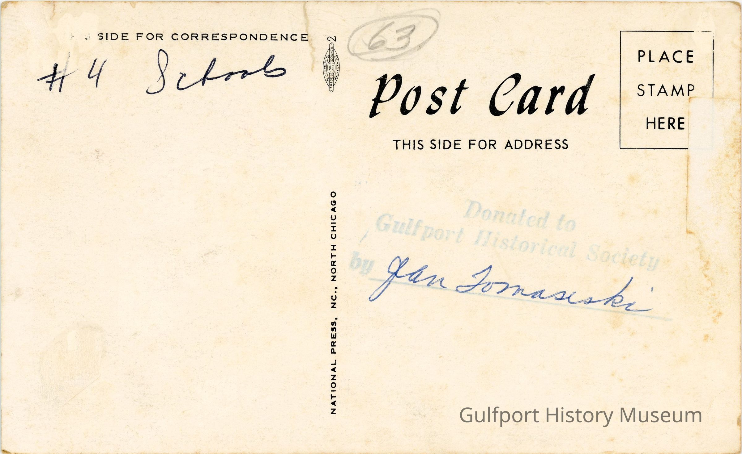 #4 Schools 63 / Donated to Gulfport Historical Society by Jan Tomascski [?]Transcriber