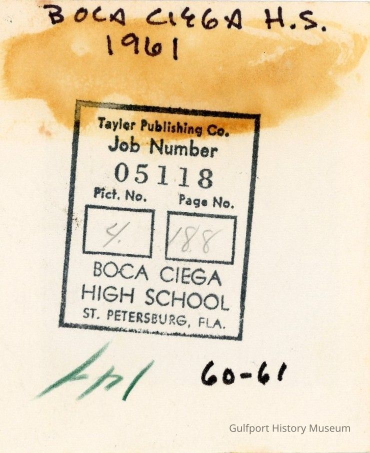 BOCA CIEGA HS 1961 Taylor Publishing Co. Job Number 05118 Pict. No. 4 Page No. 188 BOCA CIEGA HIGH SCHOOL ST. PETERSBURG, FLA. 60-61