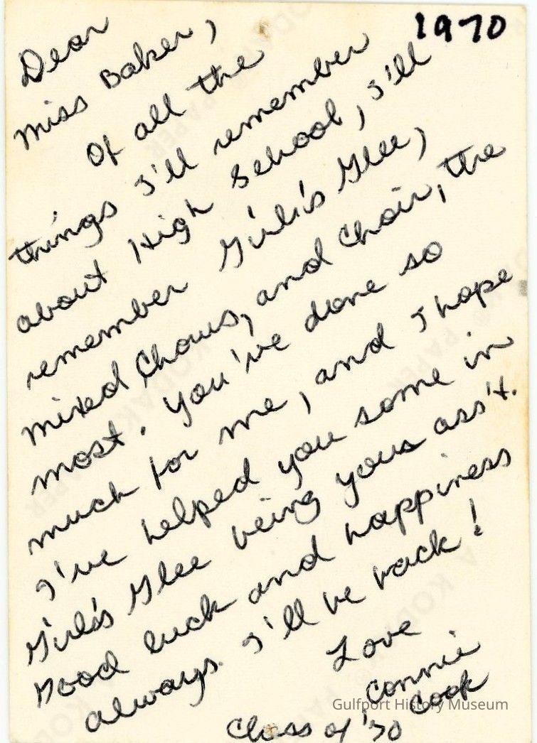Of all the things I'll remember about High School, I'll remember Girl's Glee, Mixed Chorus, and Choir, the most. You've done so much for me, and I hope I've helped you some in GIrl's Glee being your ass't. Good luck and happiness always. I'll be back!
