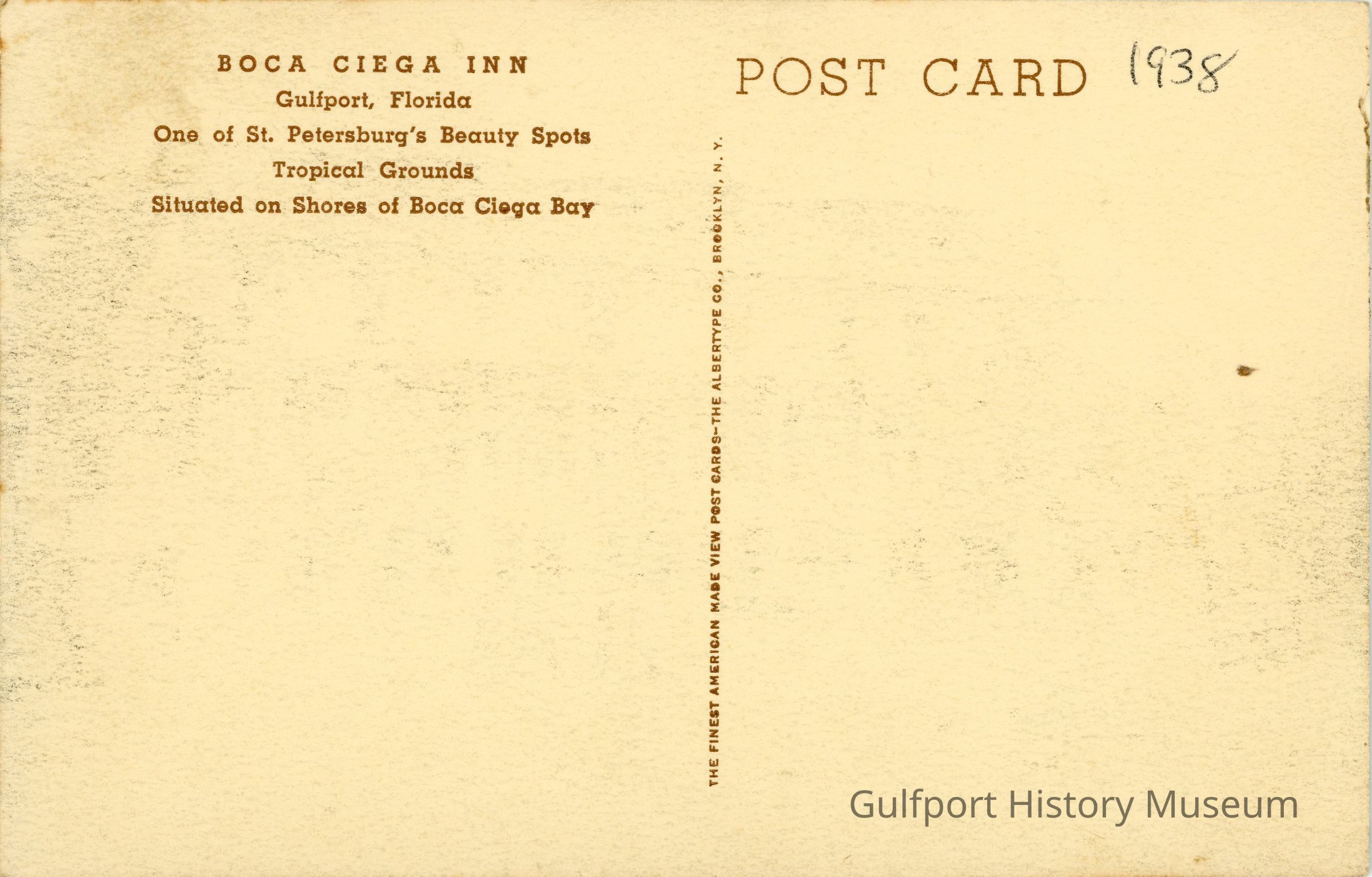 BOCA CIEGA INN / Gulfport, Florida / One of St. Petersburg's Beauty Spots / Tropical Grounds / Situated on Shores of Boca Ciega Bay / 1938