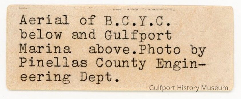 Aerial of B.C.Y.C. below and Gulfport Marina above. Photo by Pinellas County Engineering Dept.