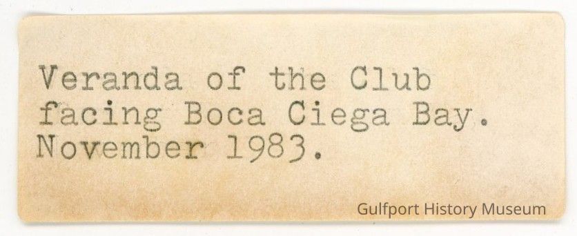 Veranda of the Club facing Boca Ciega Bay. November 1983.