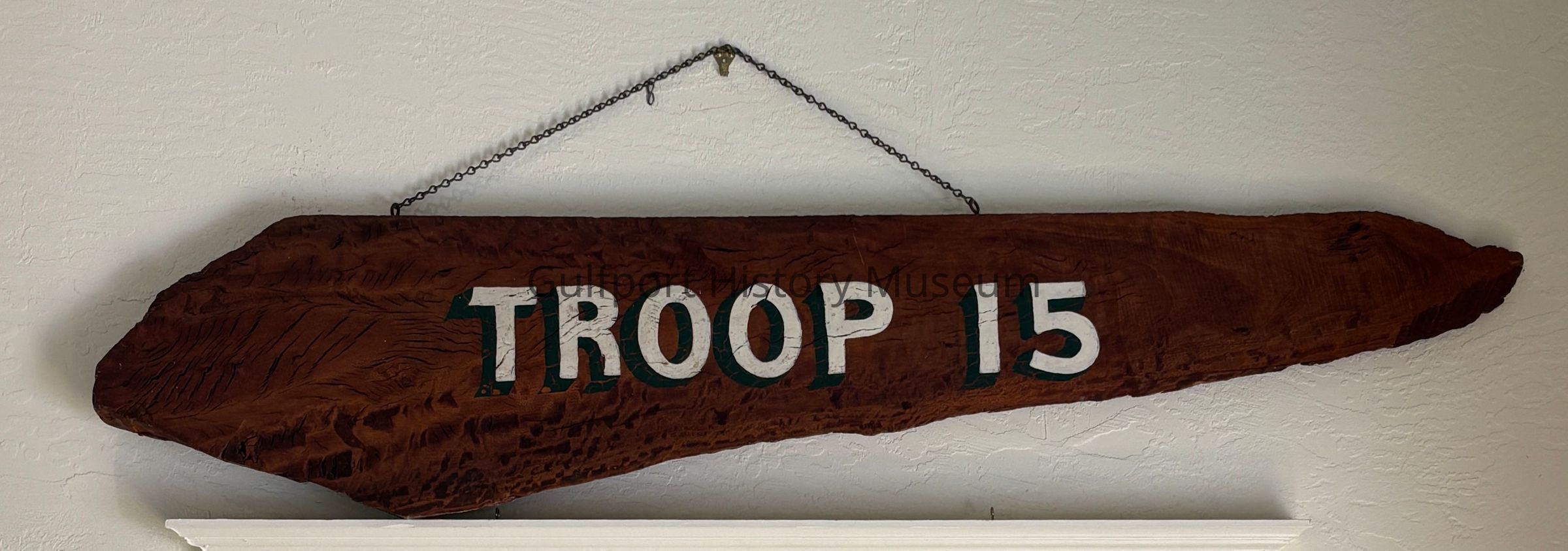 A wooden sign from Boy Scout Troop 15.