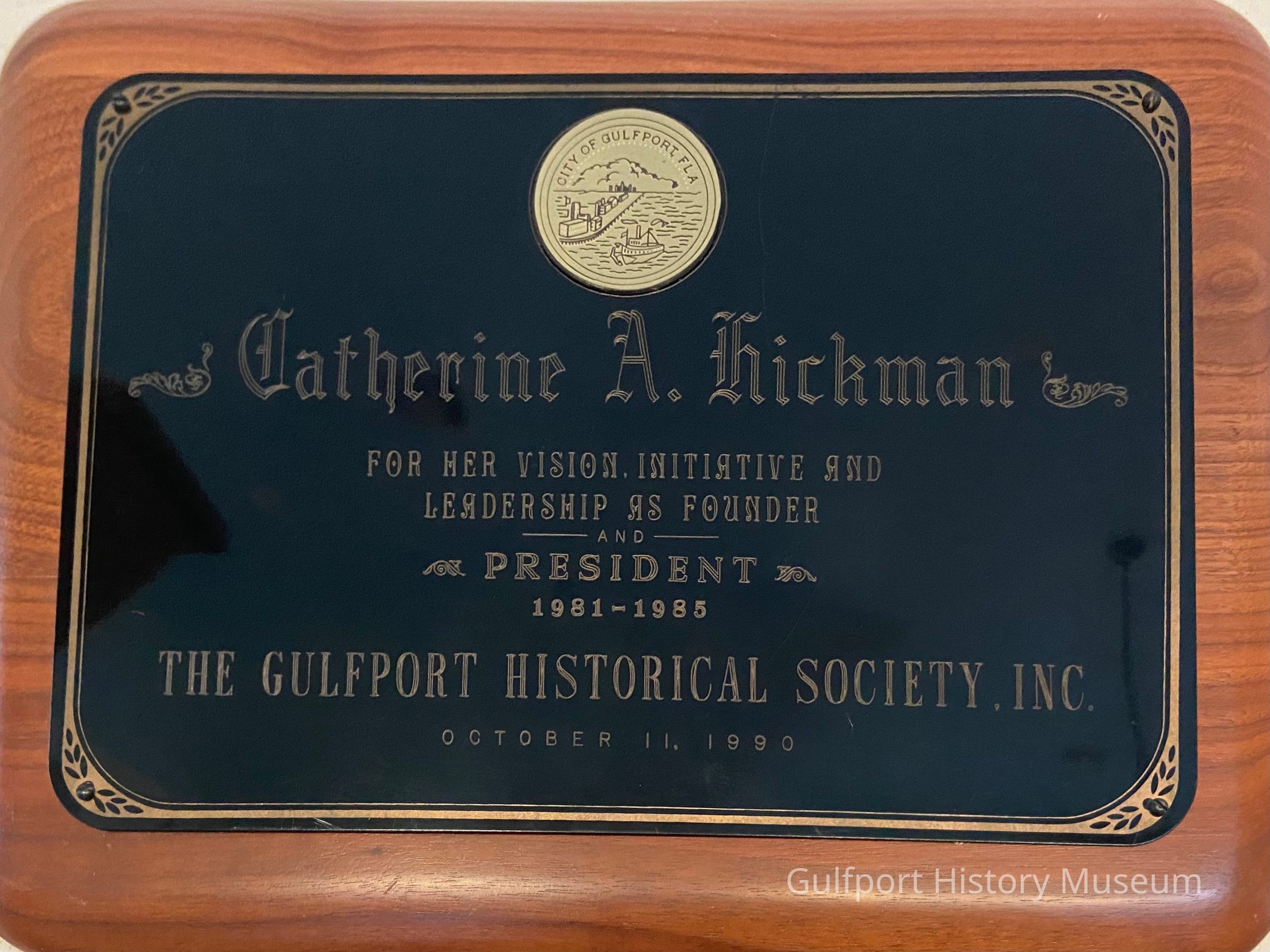 A City of Gulfport plaque presented to Catherine A. Hickman.