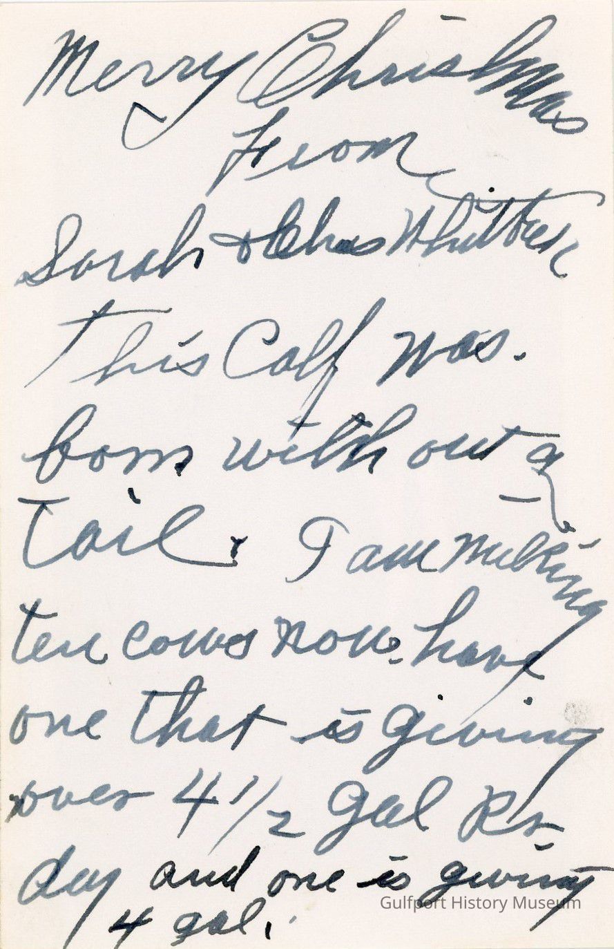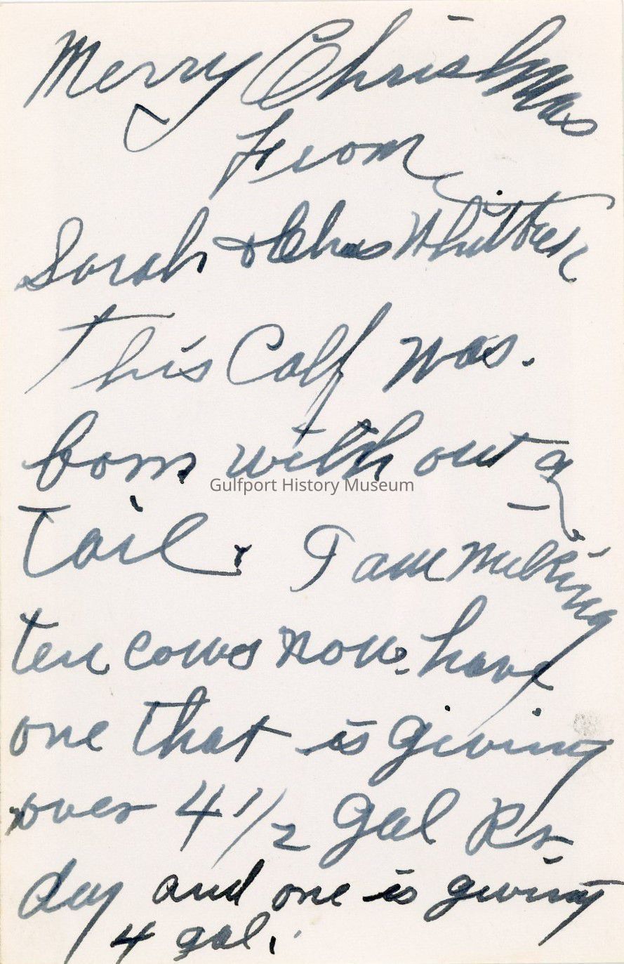 This calf was born without a tail. I am milking ten cows now. have one that is giving over 4-1/2 gal [a/per] day and one is giving 4 gal.