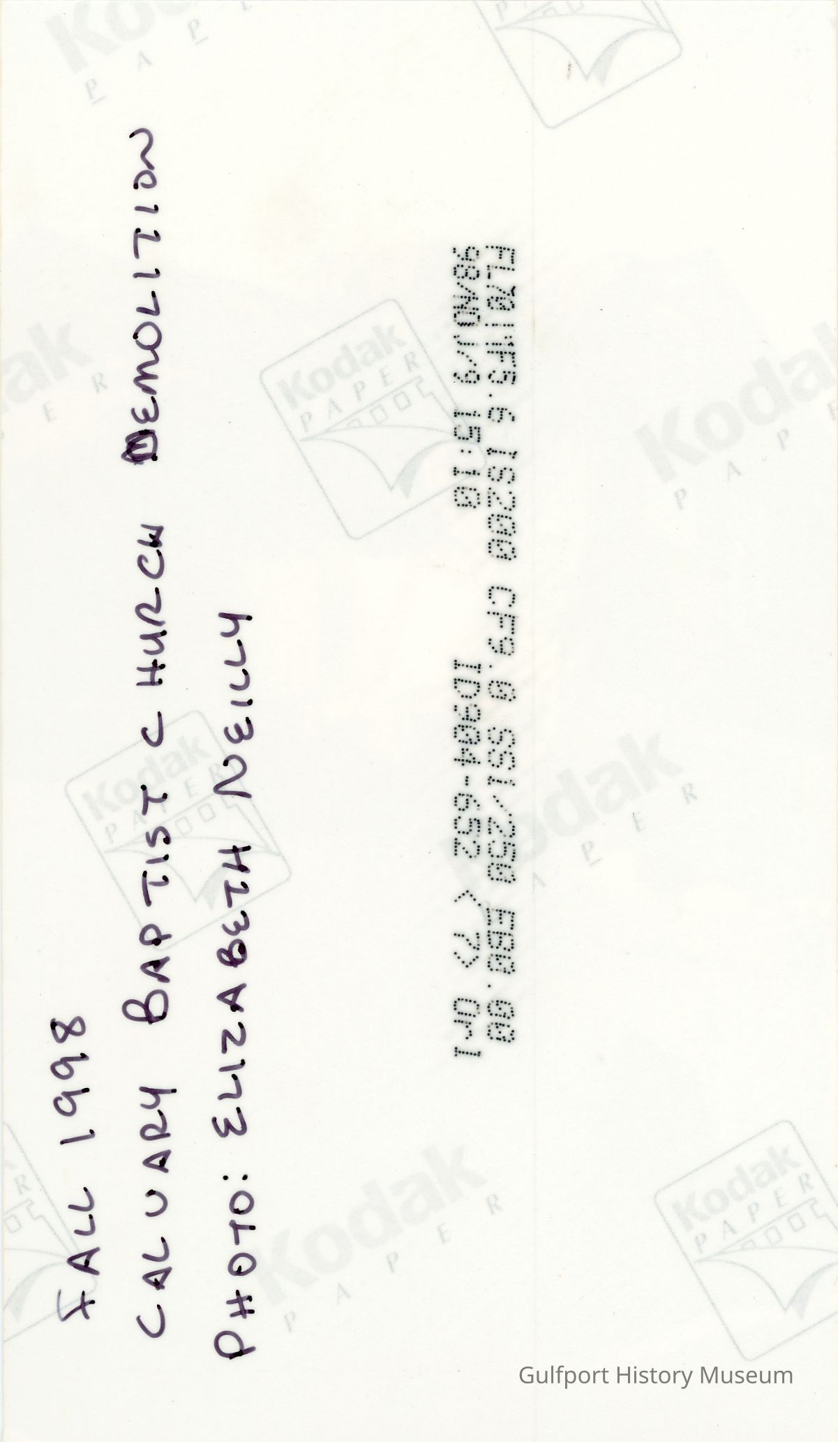 Church buildings--Florida--Gulfport, Demolition, Construction vehicles at work