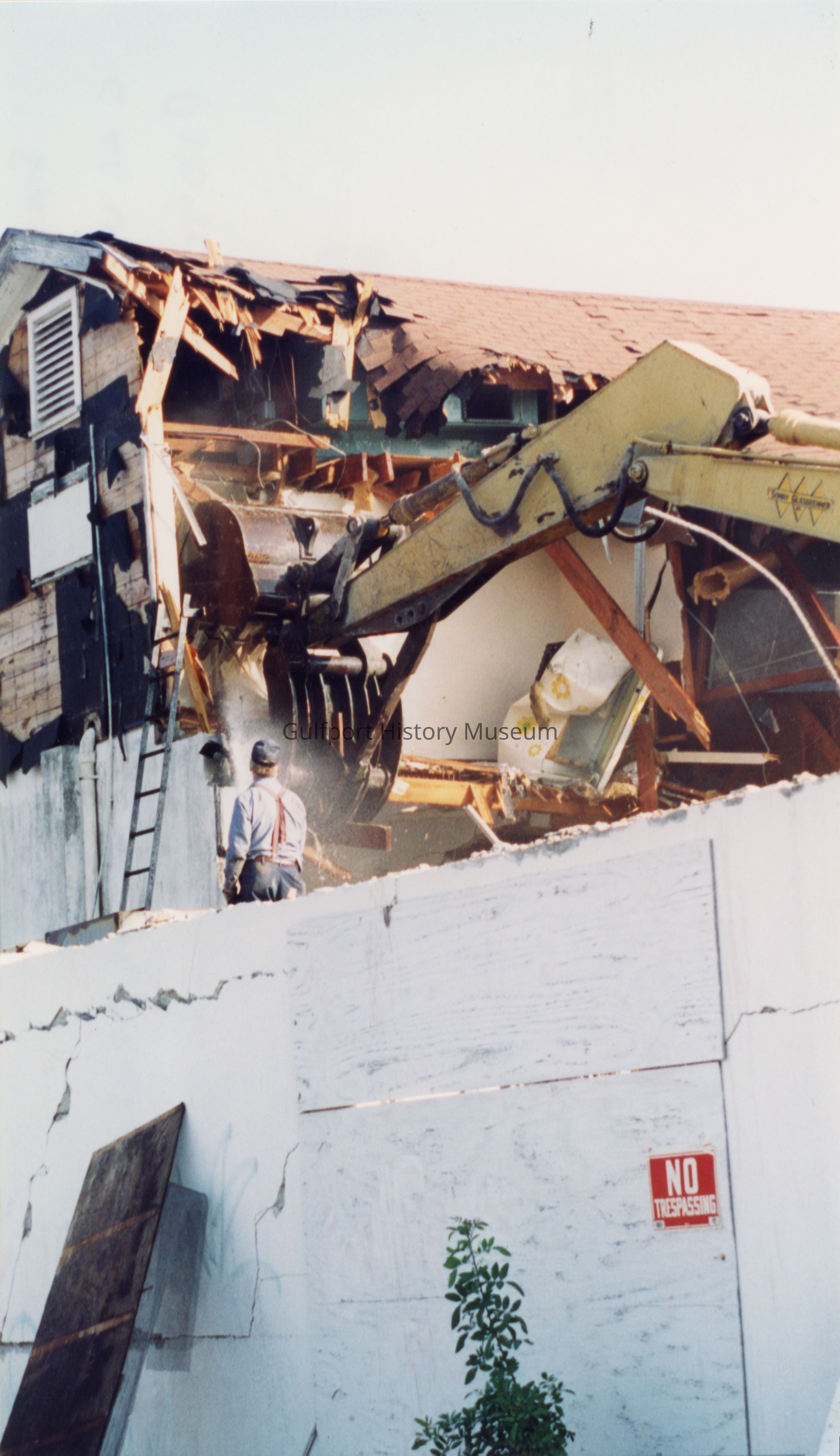 Church buildings--Florida--Gulfport, Demolition, Construction vehicles at work