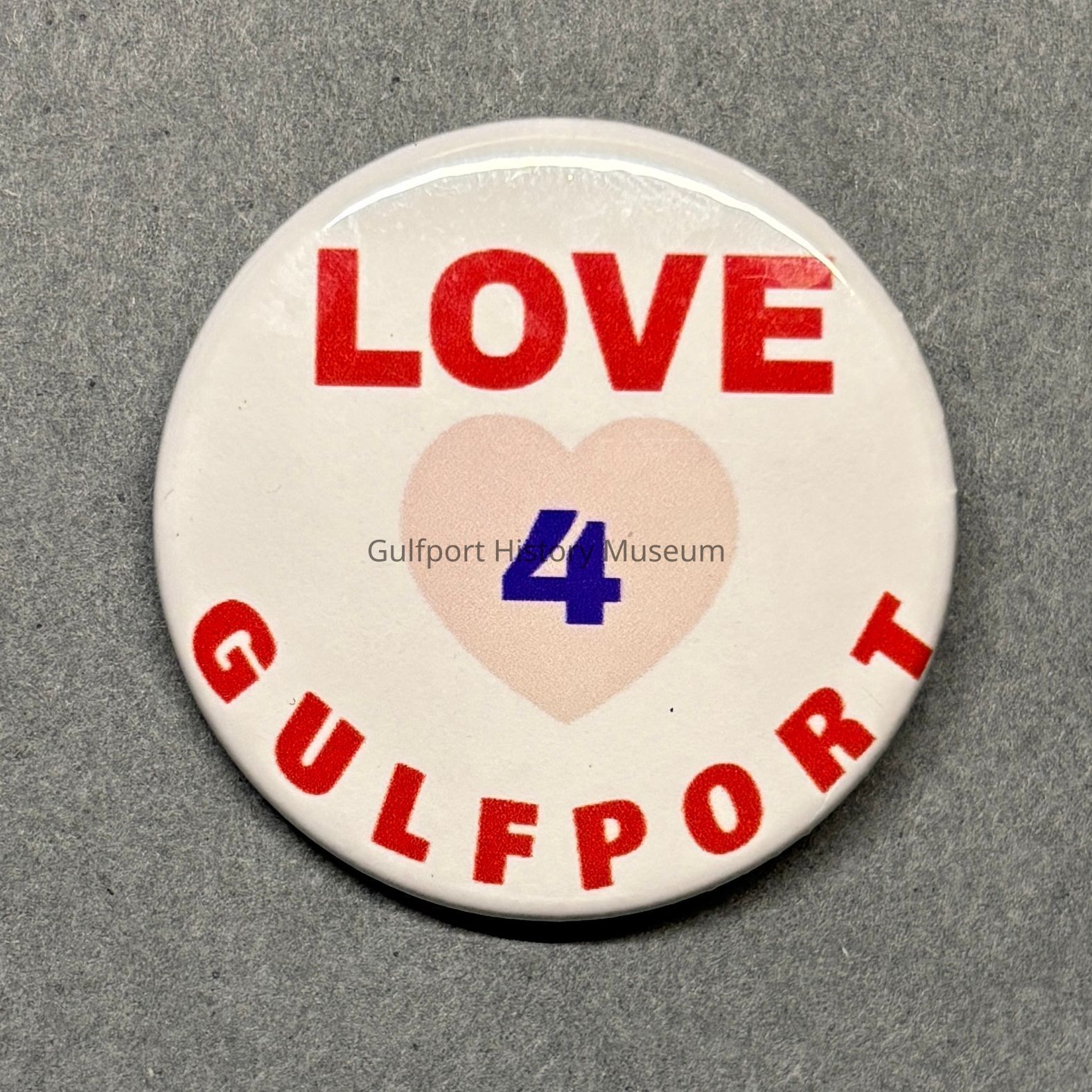 A campaign button badge for Karen Love's 2025 mayoral campaign.