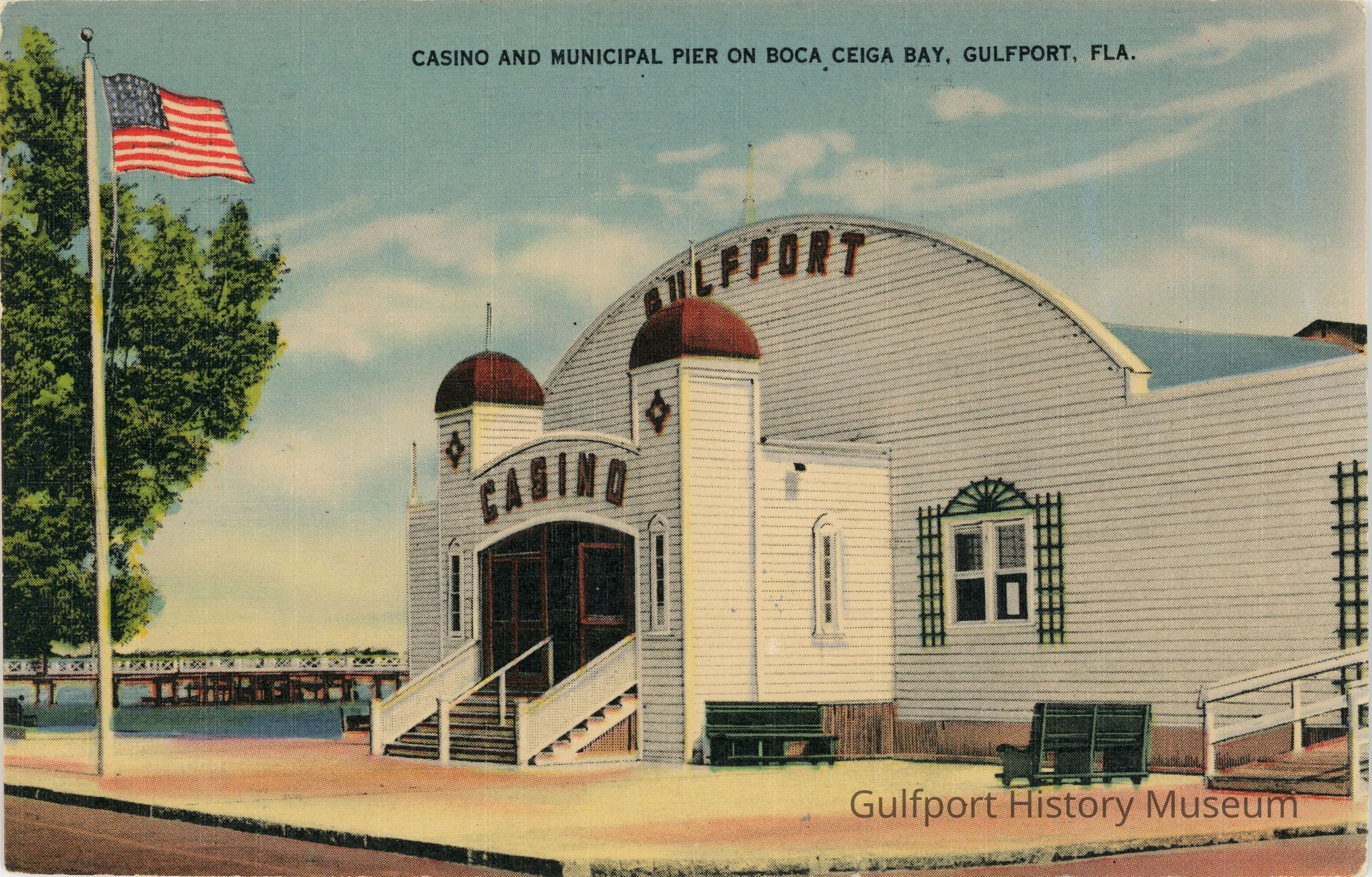 "CASINO AND MUNICIPAL PIER ON BOCA CEIGA [sic] BAY, GULFPORT, FLA."Subject