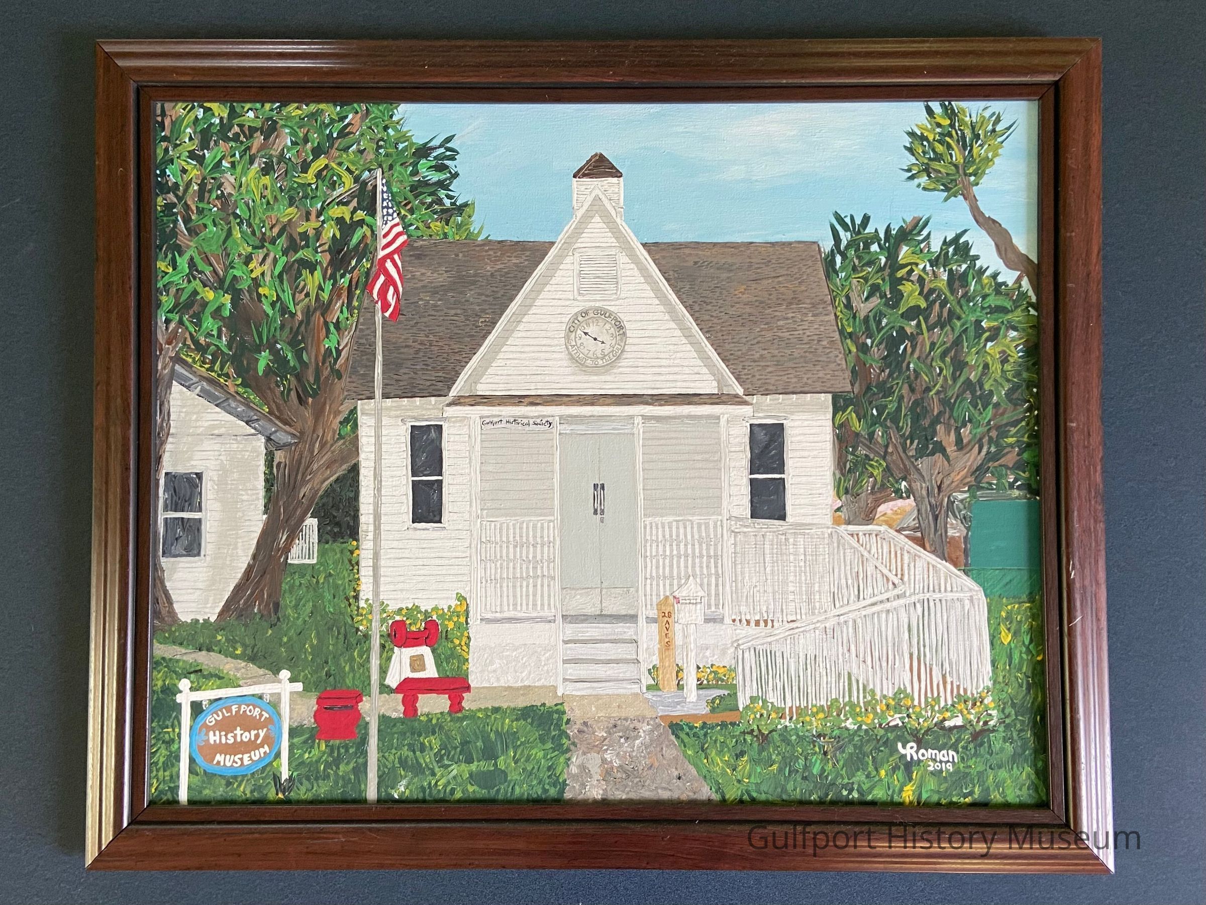 An acrylic painting of the Gulfport History Museum by Yolanda Roman.Acquisition