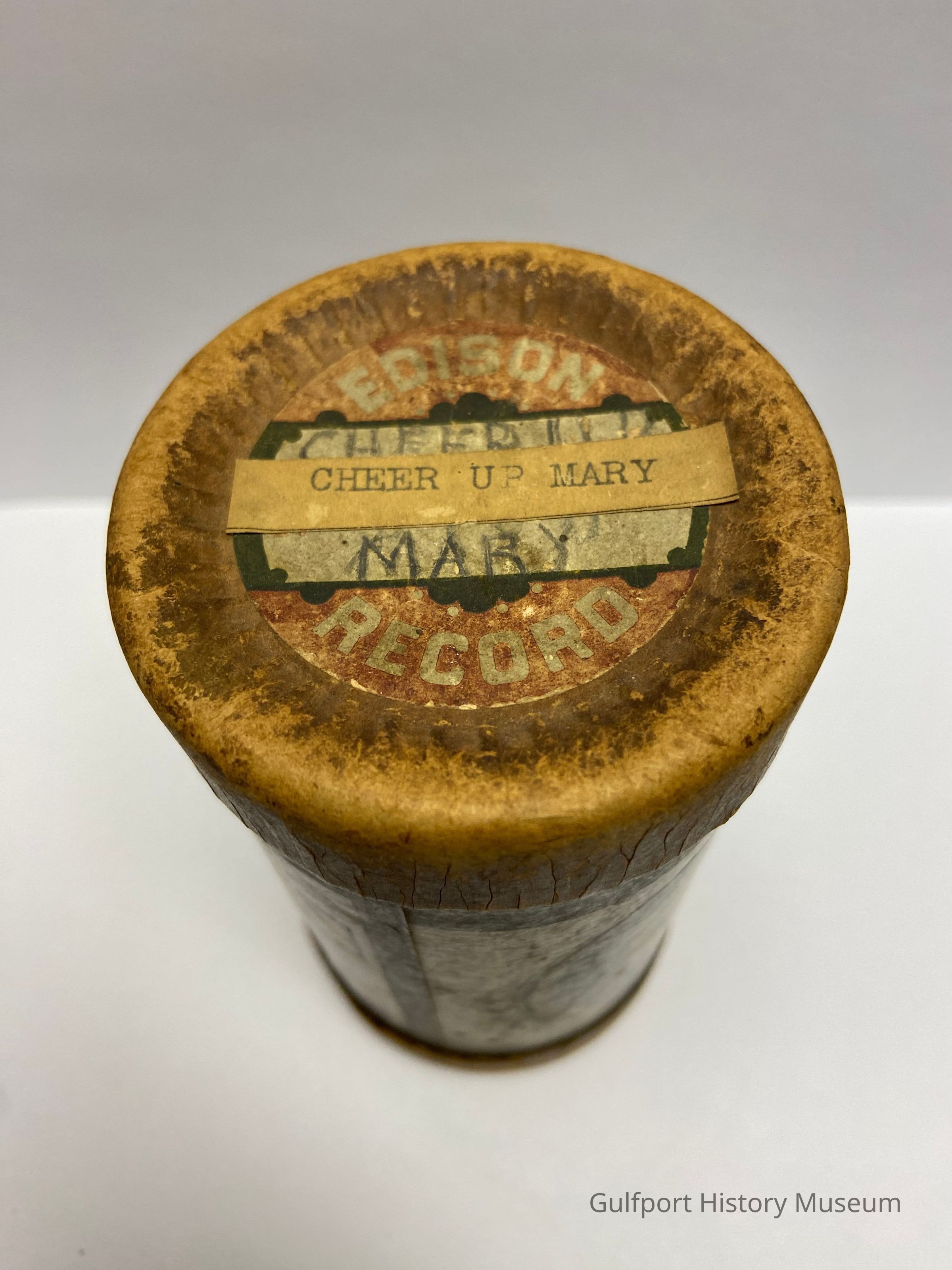An Edison Gold Moulded wax cylinder and container. Cylinder is broken and does not match container. Cylinder: My Irish Rosie, Edison 9484 (1907) Container: Cheer Up Mary, Edison 9403 (1906/1907)