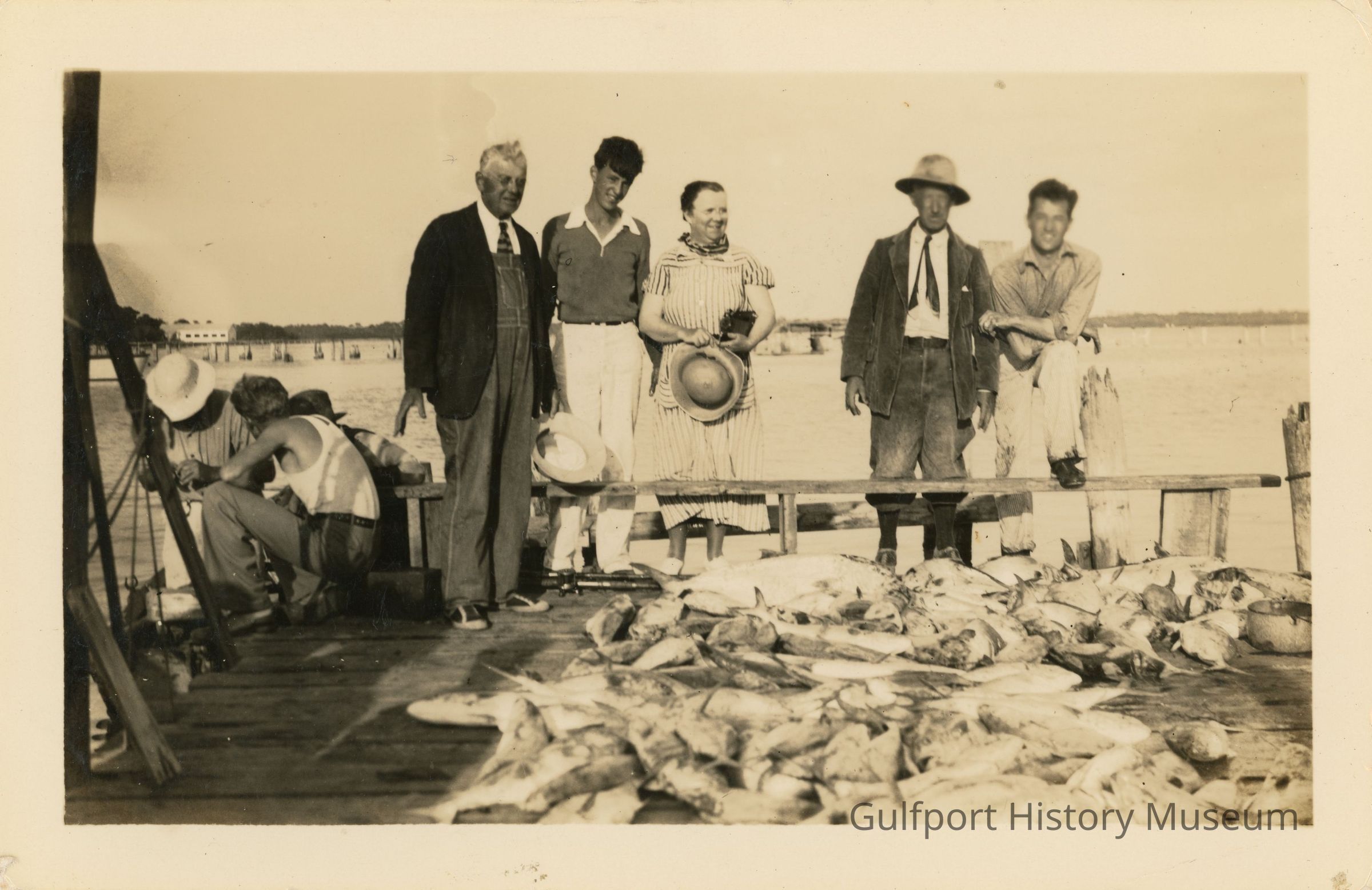 Fishing--Florida--Gulfport--1920-1940, Fashion--1920-1940, Piers, Boca Ciega Bay (Fla.), Fish