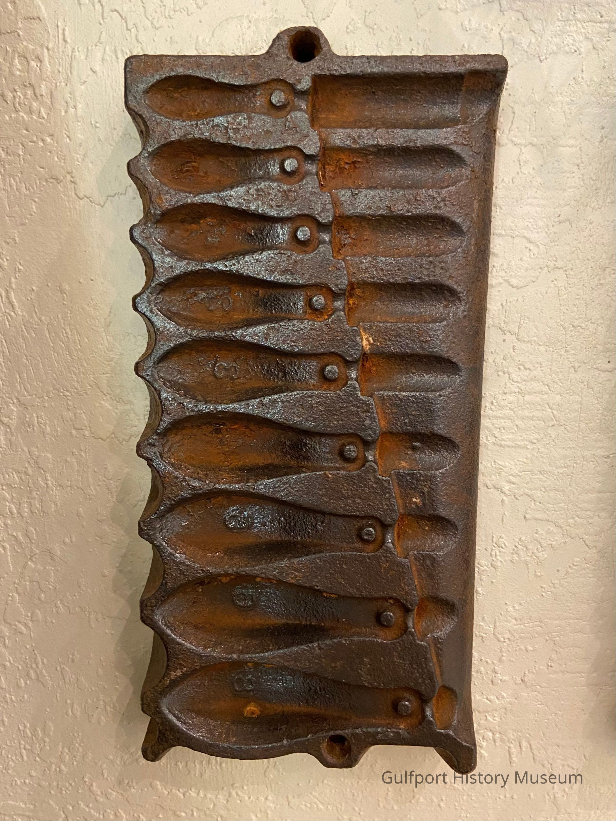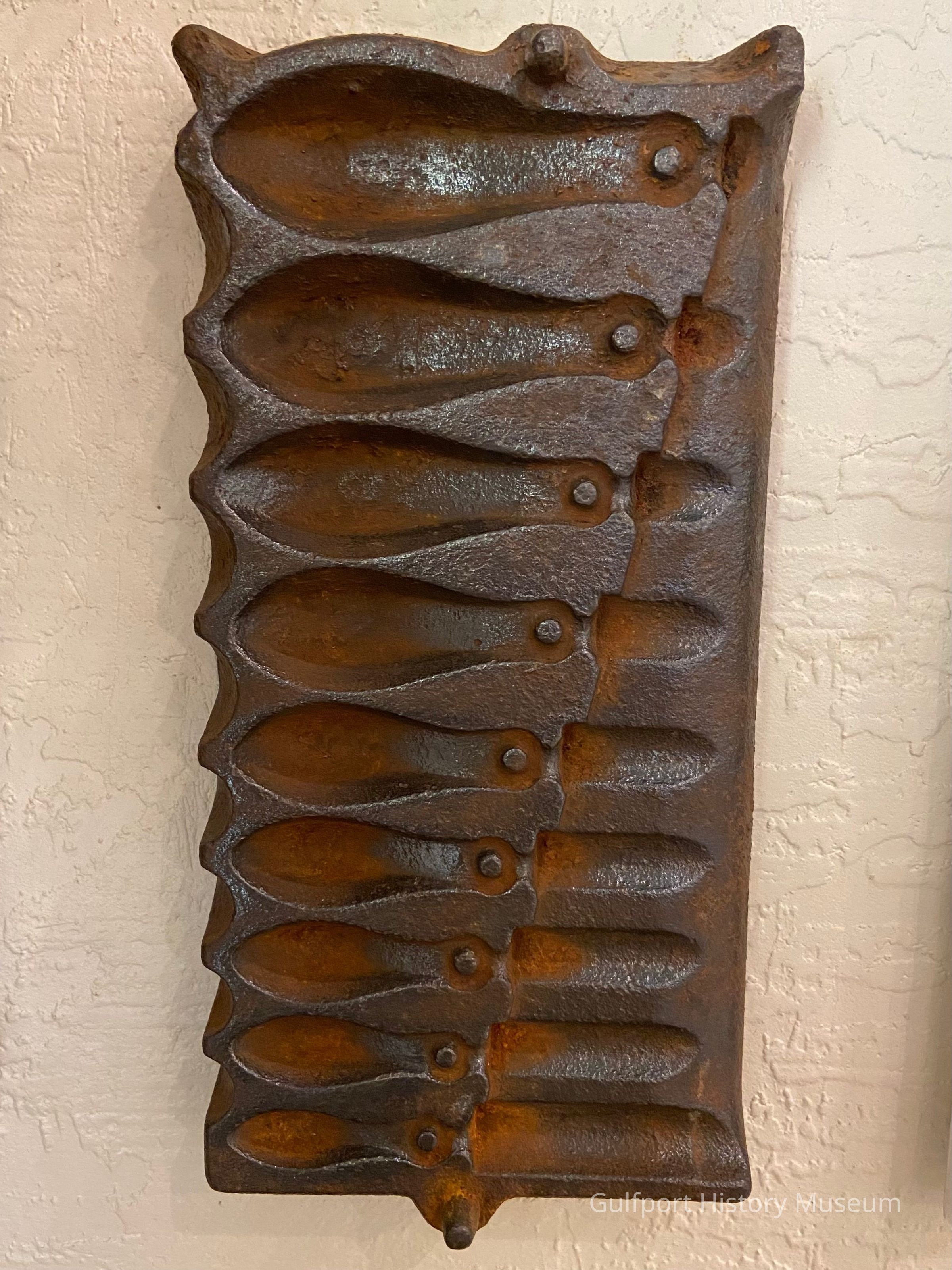 Two half molds for fishing weights.