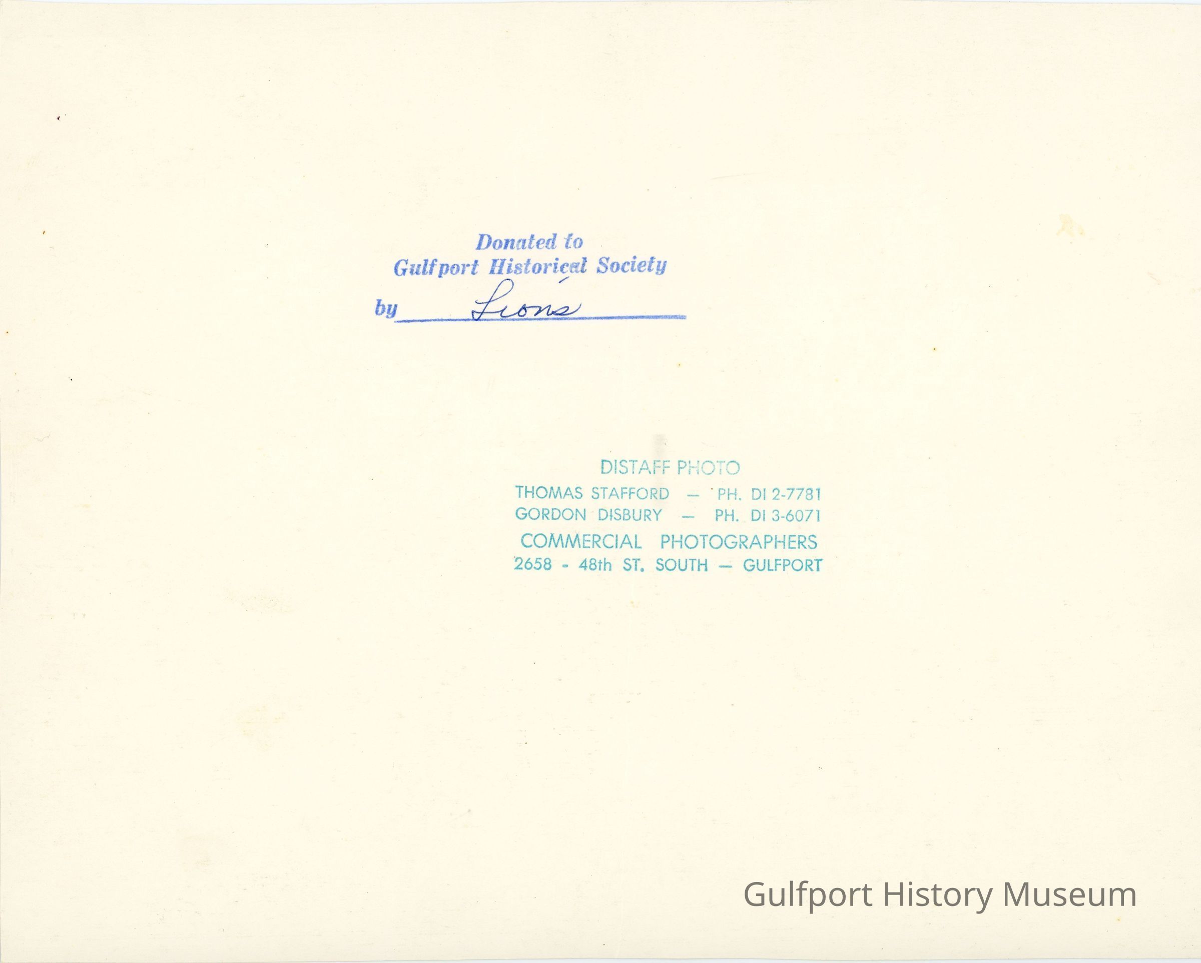 Donated to Gulfport Historical Society by Lions
