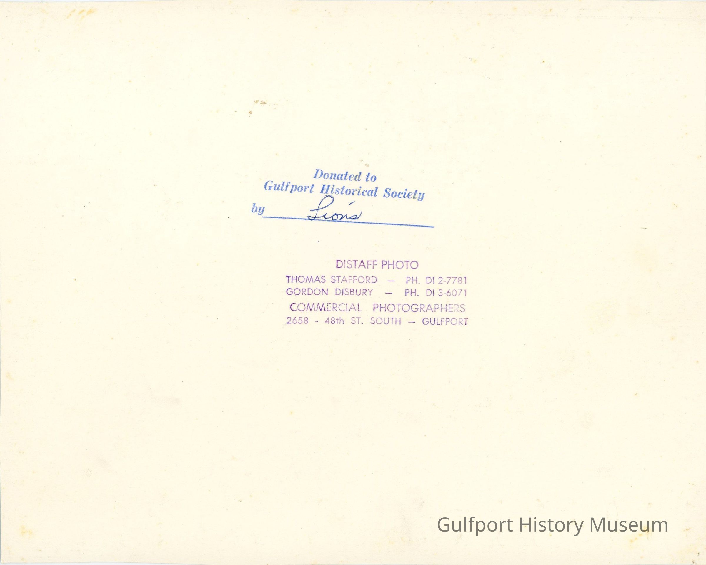 Donated to Gulfport Historical Society by Lions