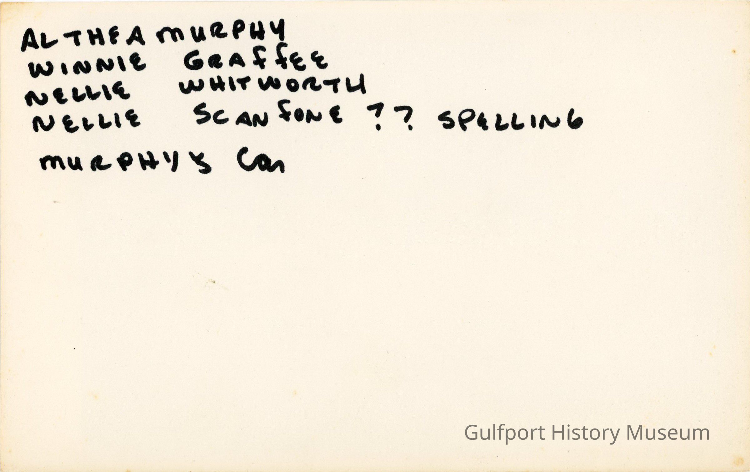ALTHEA MURPHY WINNIE GRAFFEE NELLIE WHITWORTH NELLIE SCANFONE ?? SPELLING MURPHY'S CAR