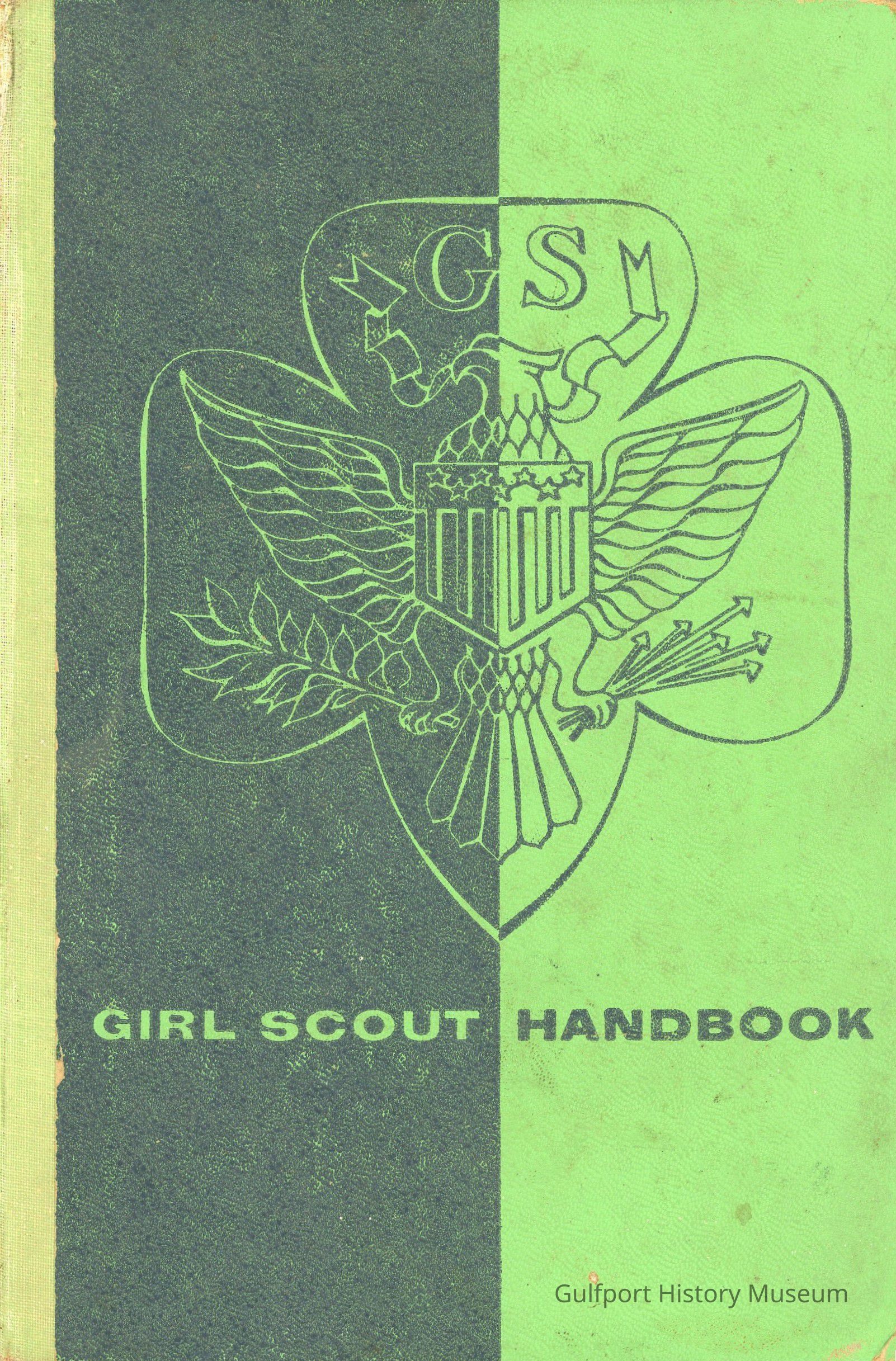 A 1953 Girl Scout handbook. Black and green with a large eagle trefoil design.