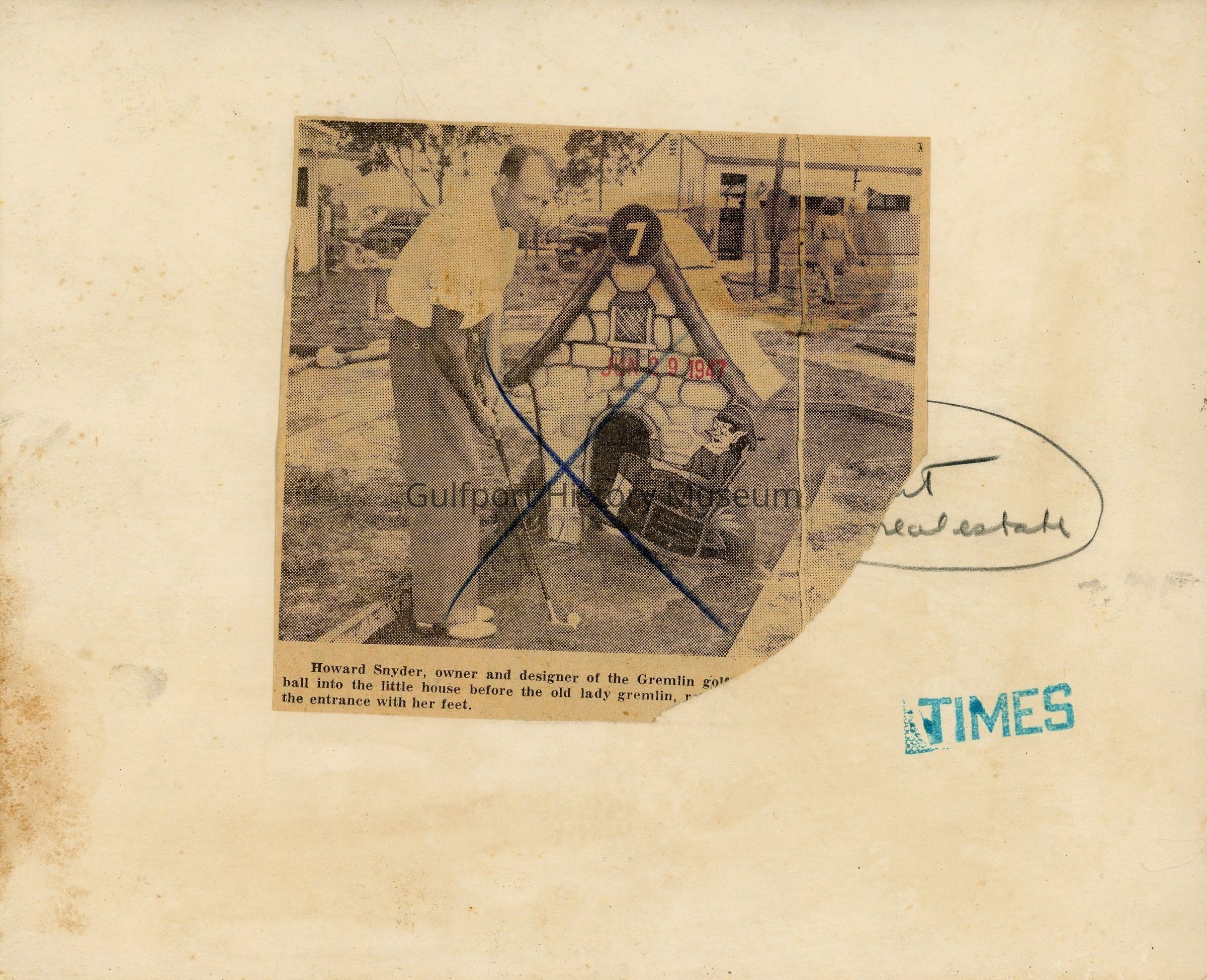 "In 1947, Howard Snyder...built his Gremlin Golf Course on the waterfront across from the Casino, at 5513 Shore Boulevard. Howard's main business was sign painting, which lasted much longer than the miniature golf course." (Gabber Newspaper, September 24, 2009)Collection