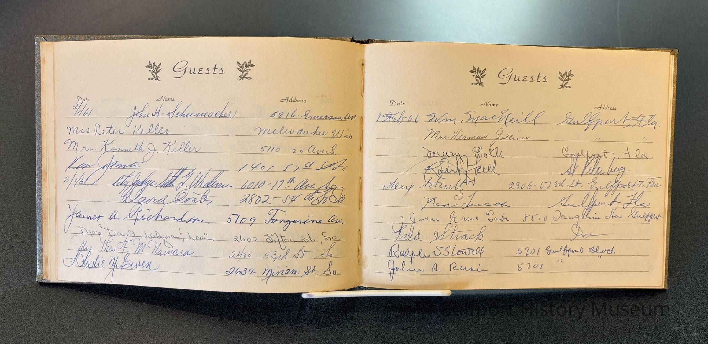 A guestbook from the Gulfport Police Department for February 1, 1961.