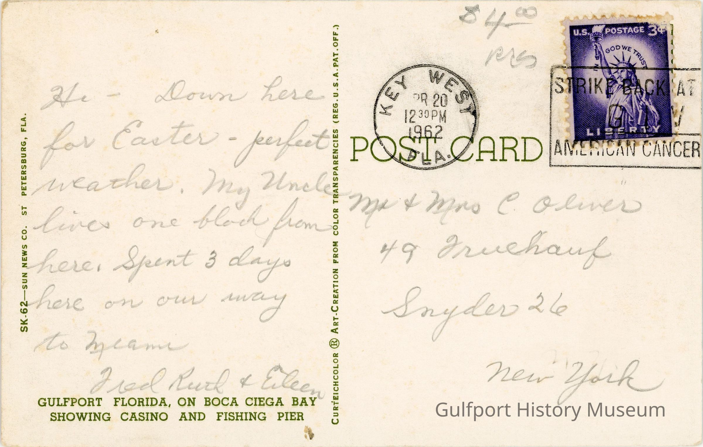 GULFPORT FLORIDA, ON BOCA CIEGA BAY / SHOWING CASINO AND FISHING PIER