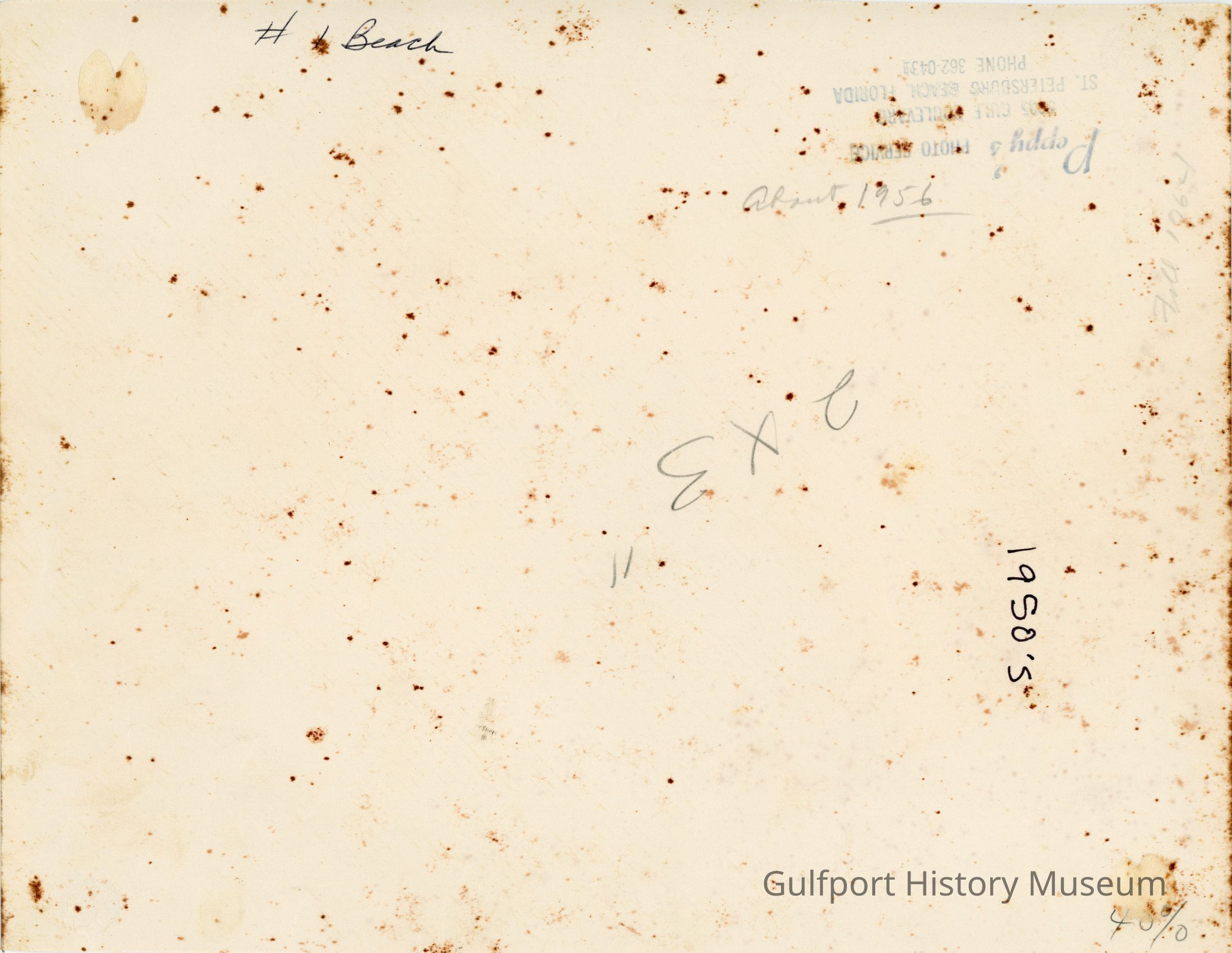 #1 Beach 1950's 2x3" Peppy's PHOTO SERVICE 5[?]05 GULF BOULEVARD ST. PETERSBURG BEACH, FLORIDA PHONE 362-0431 40%