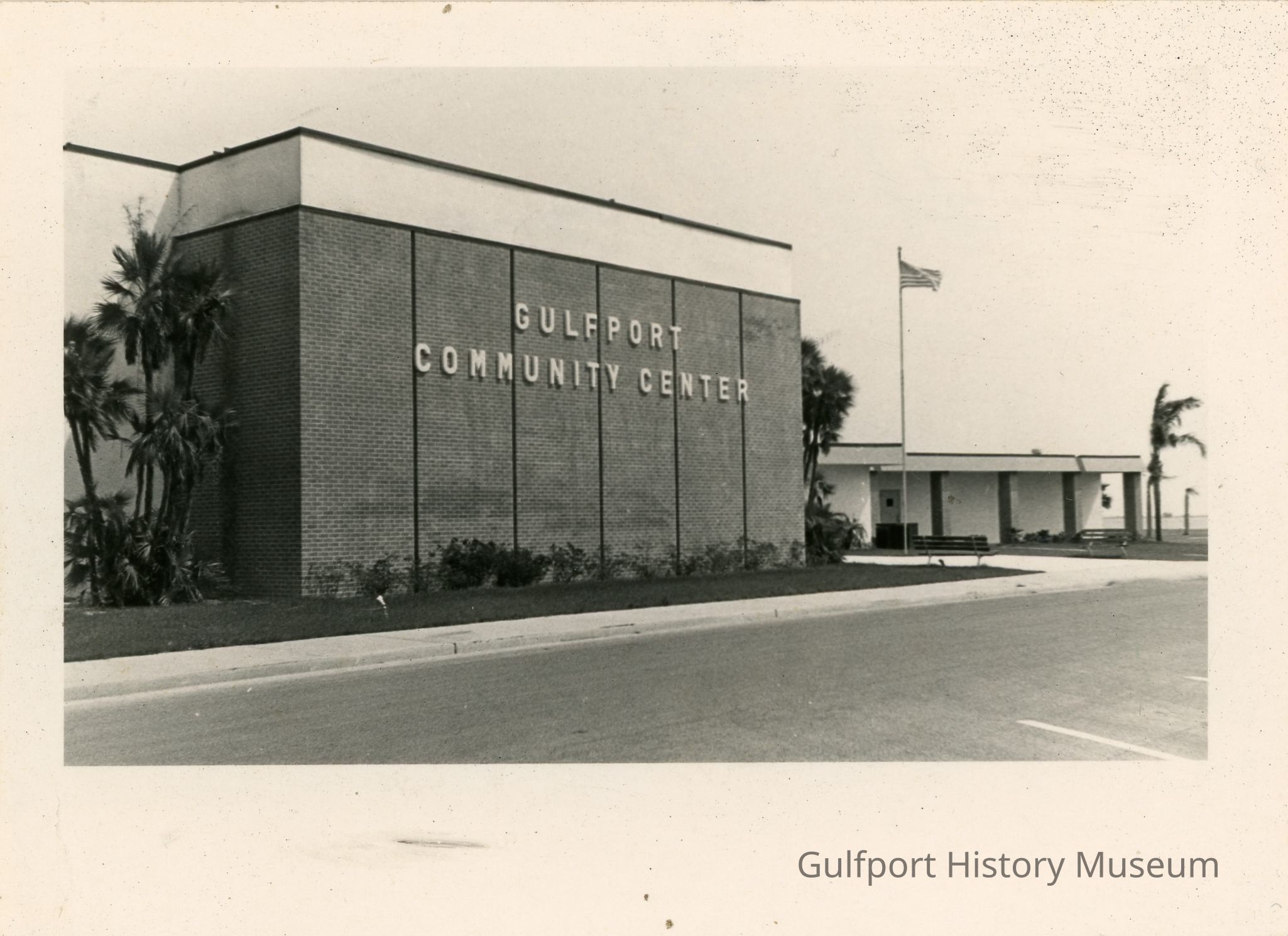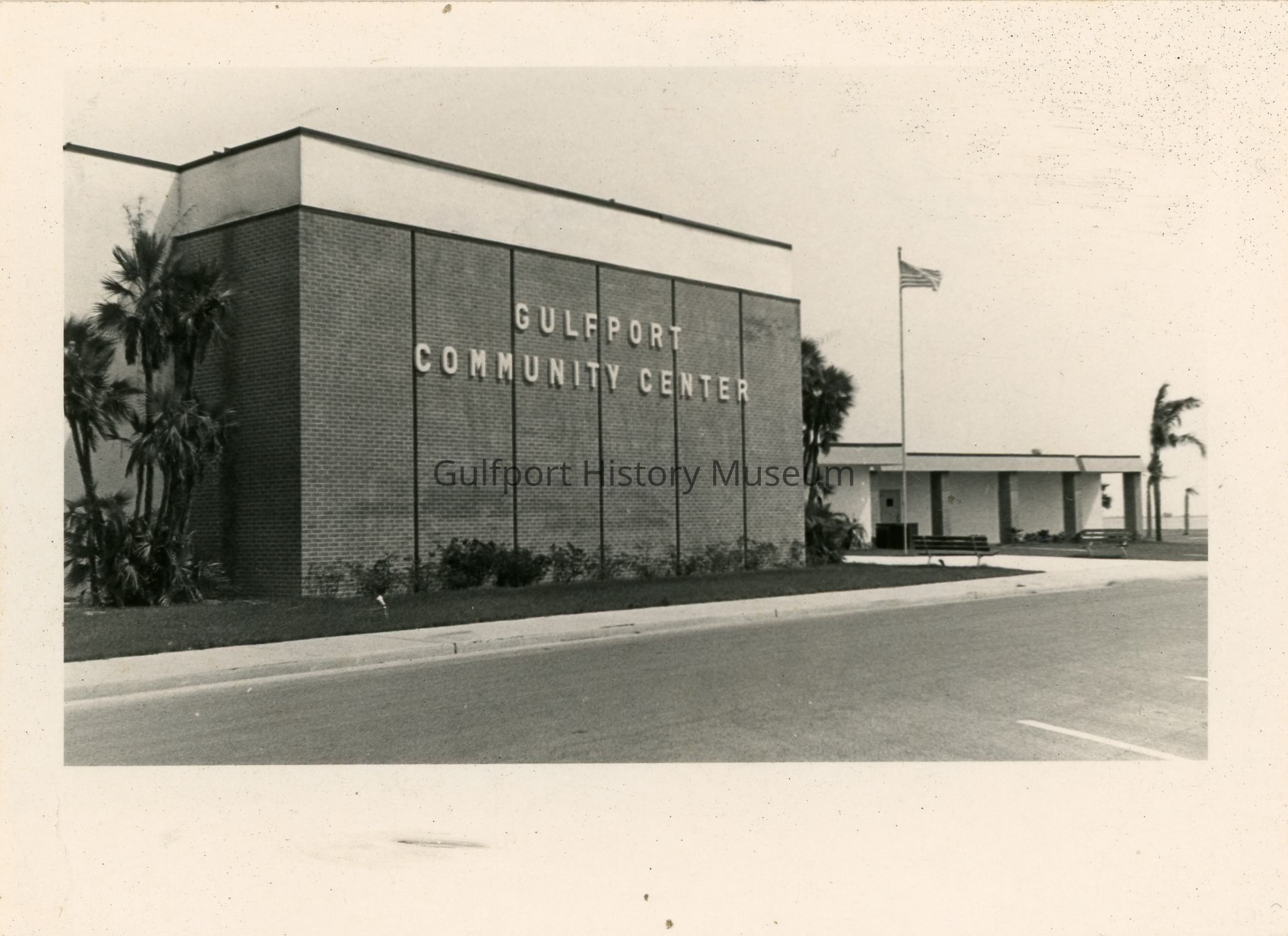 A black and white photograph of the Gulfport Community Center (later renamed Gulfport Recreation Center).