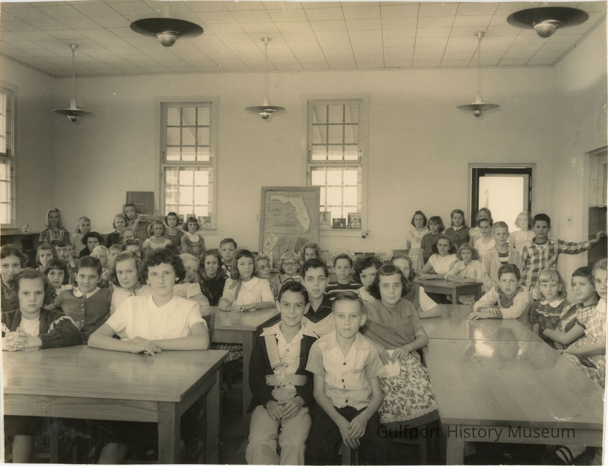 A black and white photograph of [?]'s [?] grade class for the [?] school year at Gulfport Elementary School.