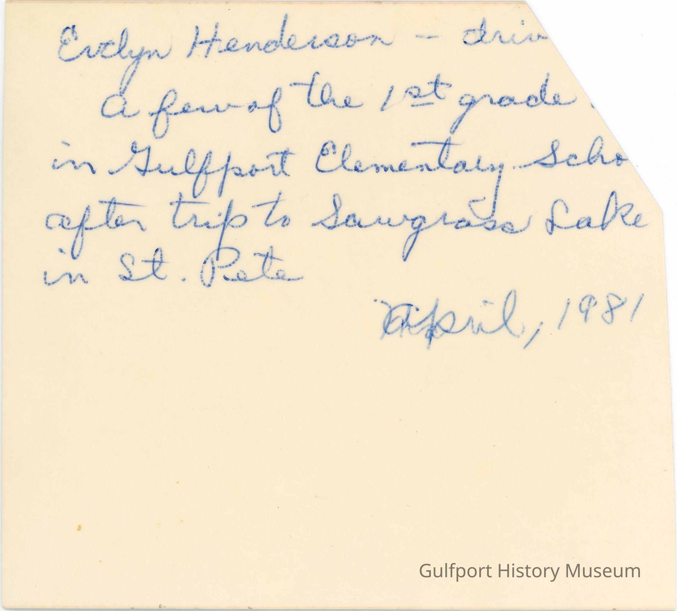 Evelyn Henderson - [driver] a few of the 1st grade [?] in Gulfport Elementary School after trip to Sawgrass Lake in St. Pete April, 1981