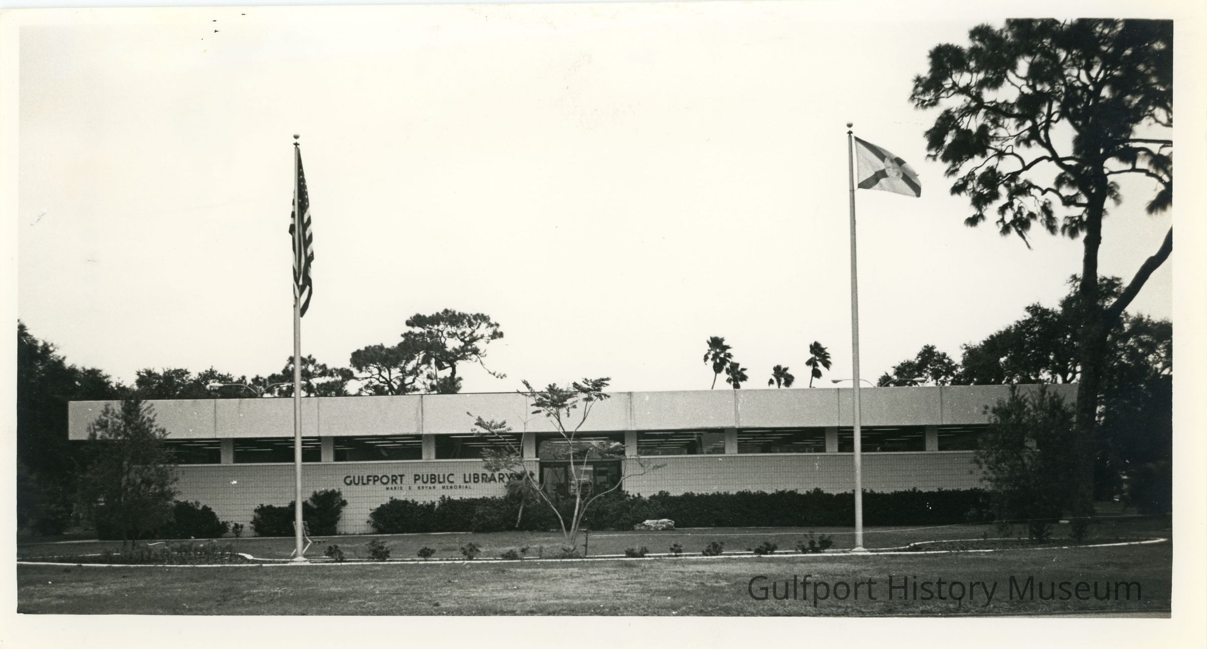 Libraries--Florida--Gulfport--1970-1980, Architecture, Flags--America, Flags--Florida