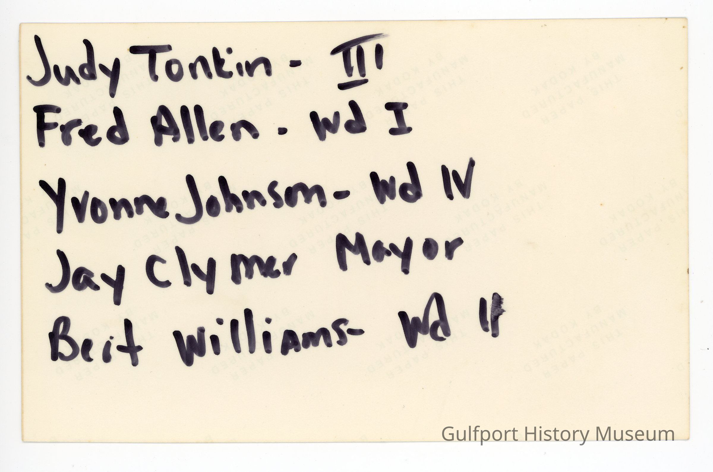 Judy Tonkin - III / Fred Allen - Wd I / Yvonne Johnson - Wd IV / Jay Clymer Mayor / Bert Williams - Wd II