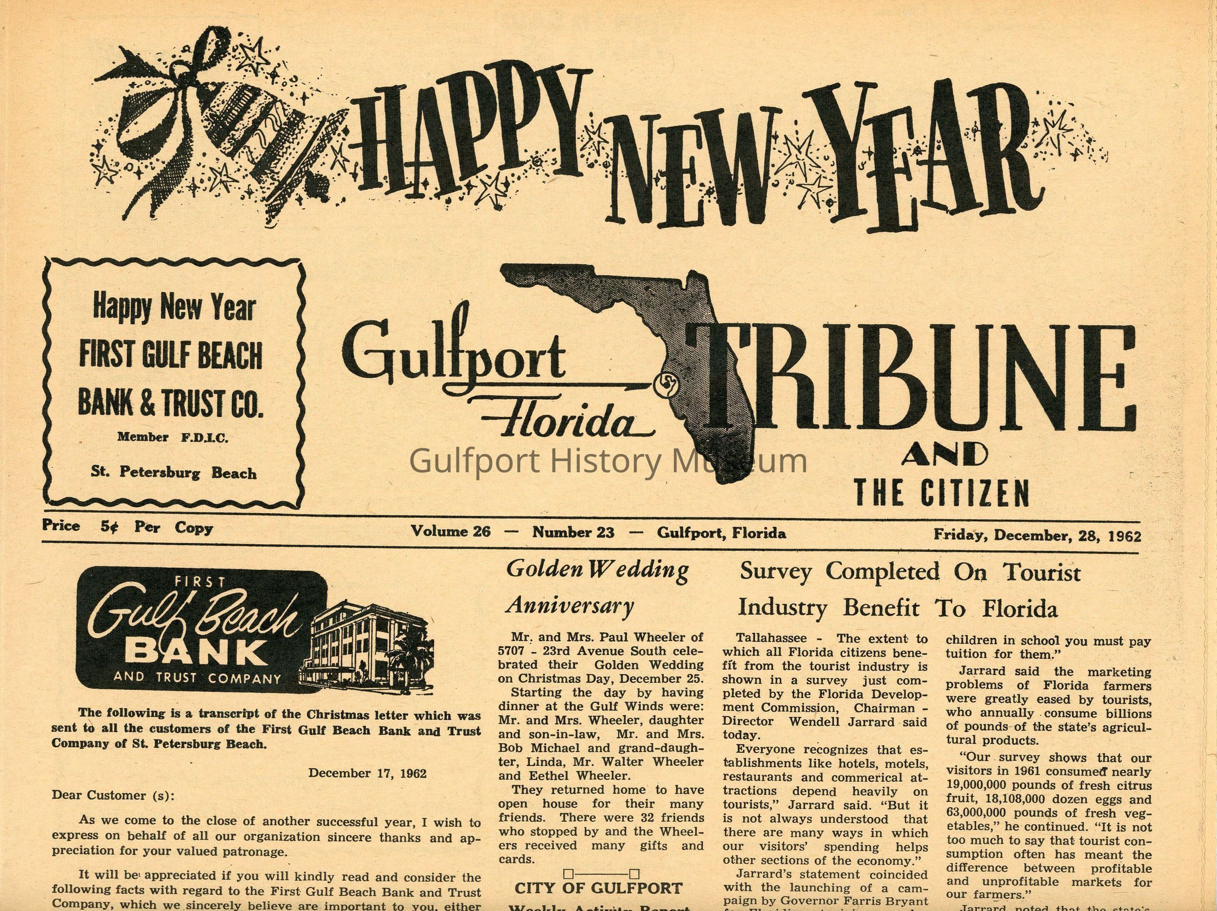The Friday, December 28, 1962 issue of the Gulfport Tribune and the Citizen newspaper.