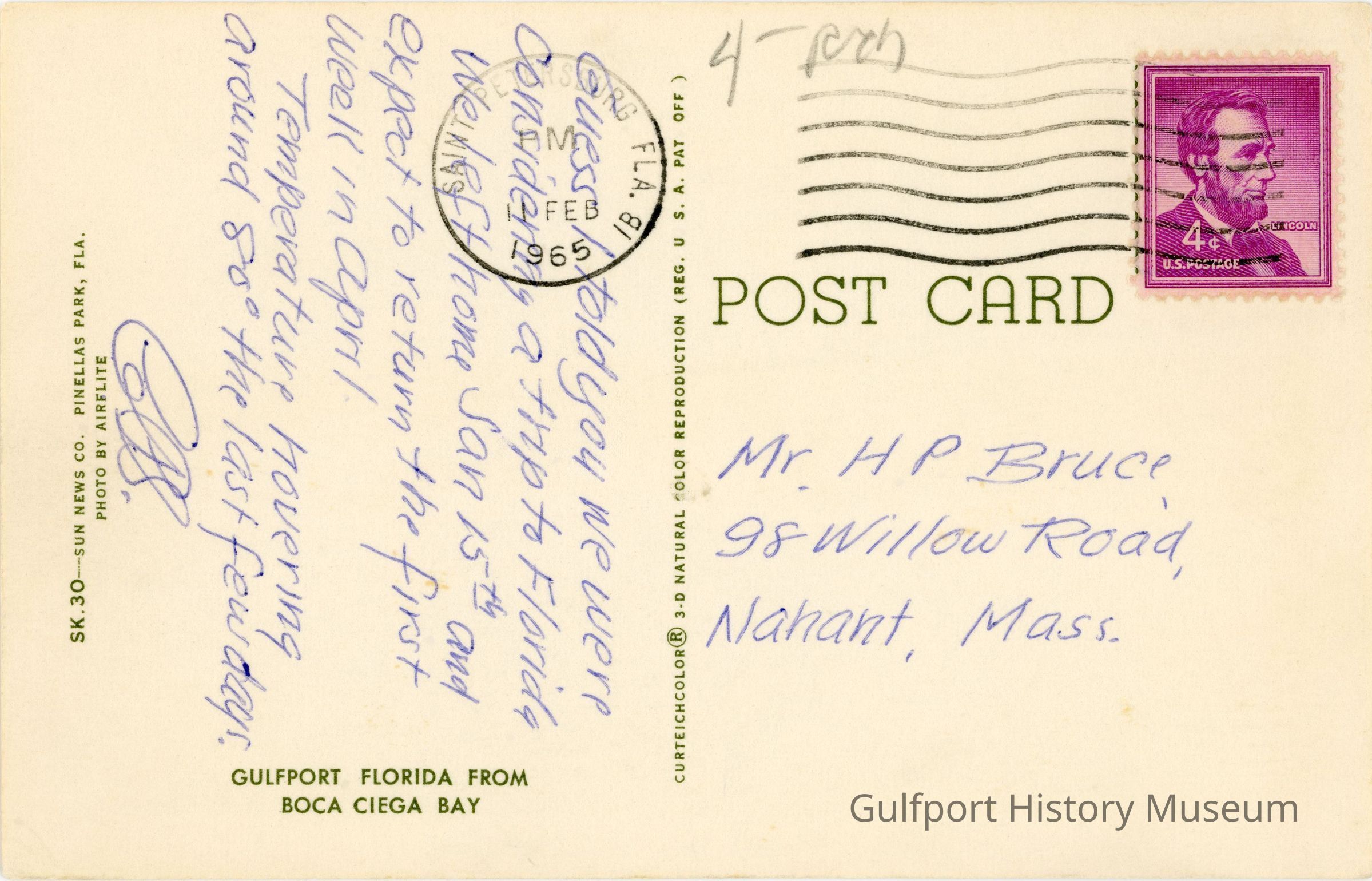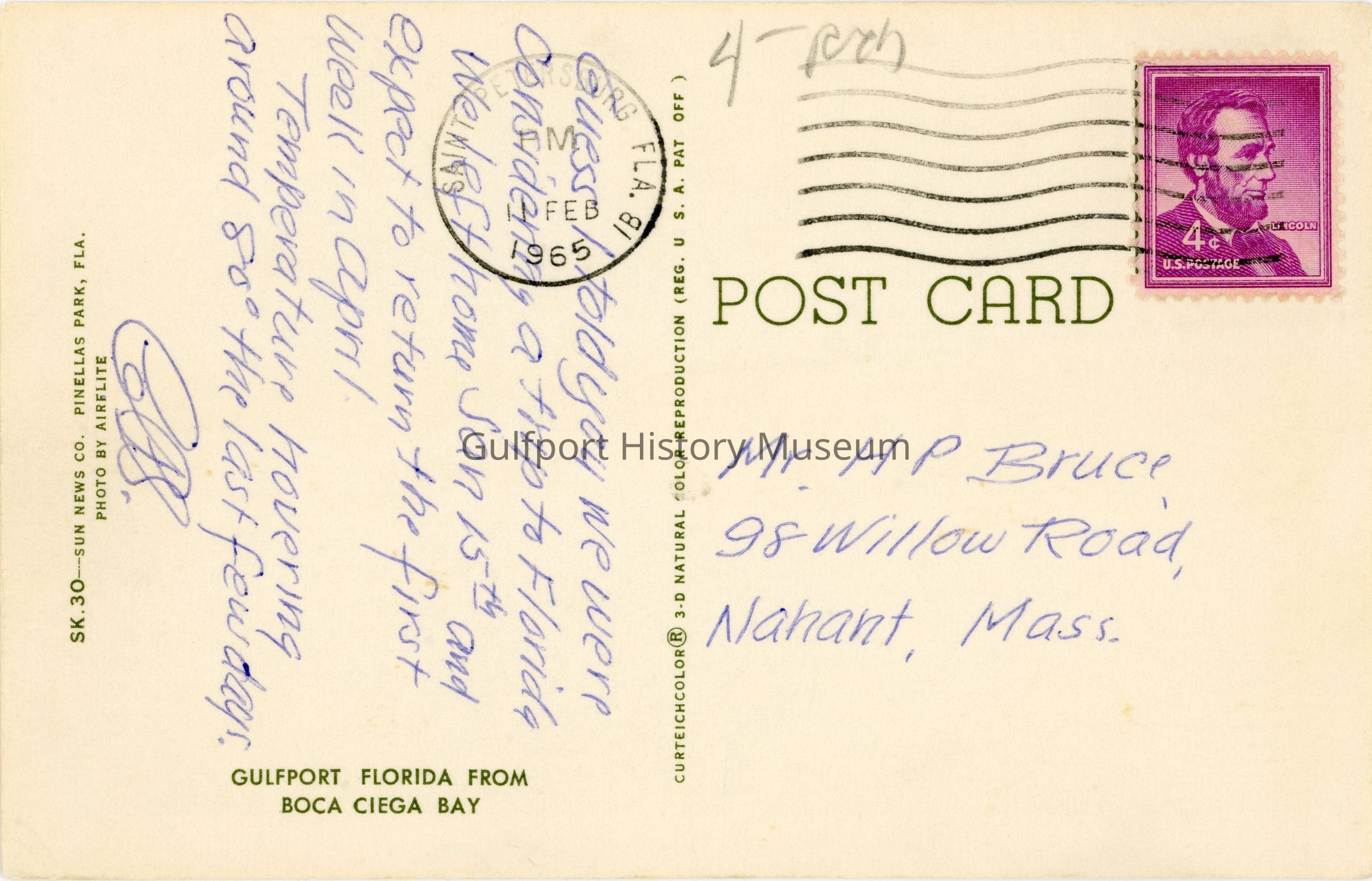 "Hello from Gulfport, Florida" / "Gulfport, Florida, from Boca Ciega Bay"Subject