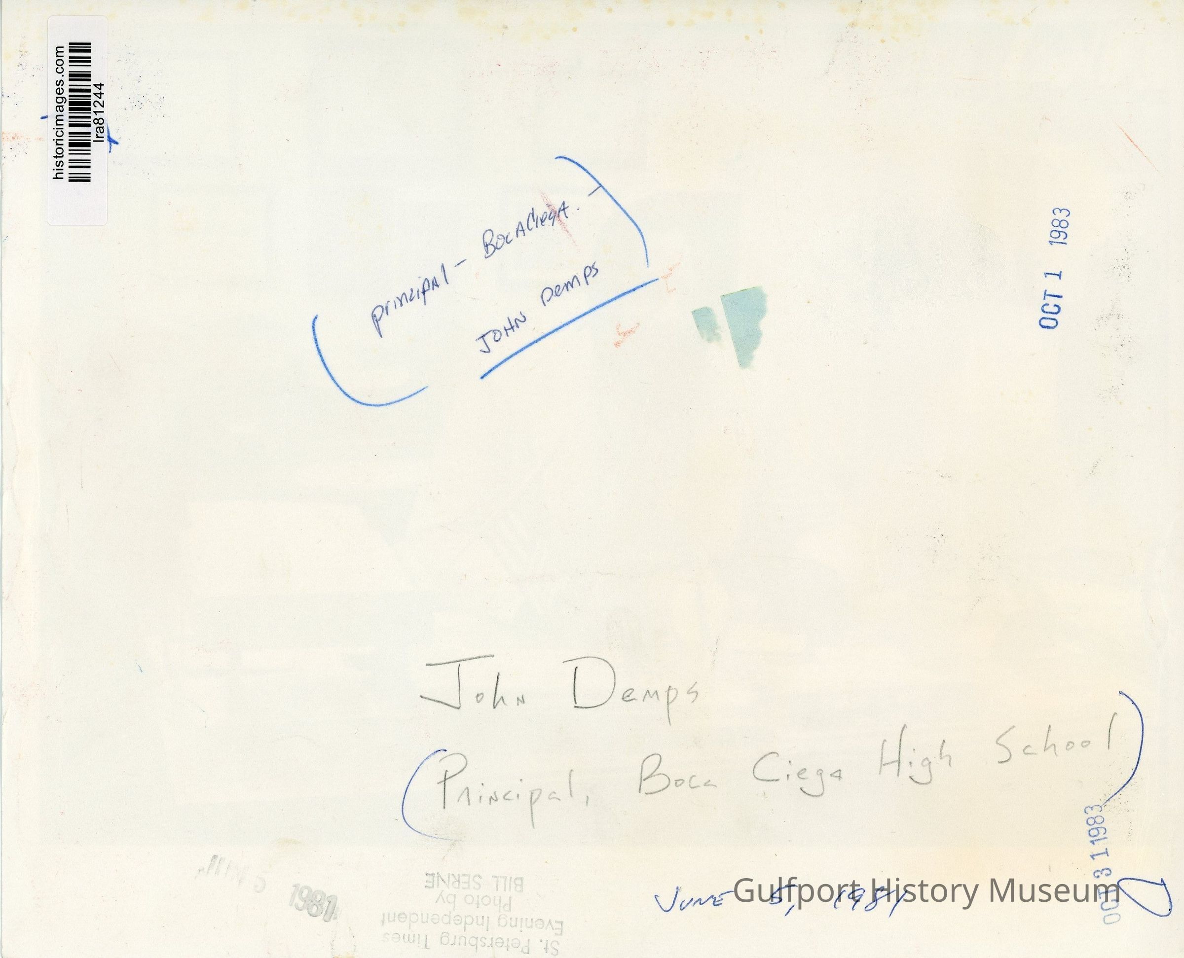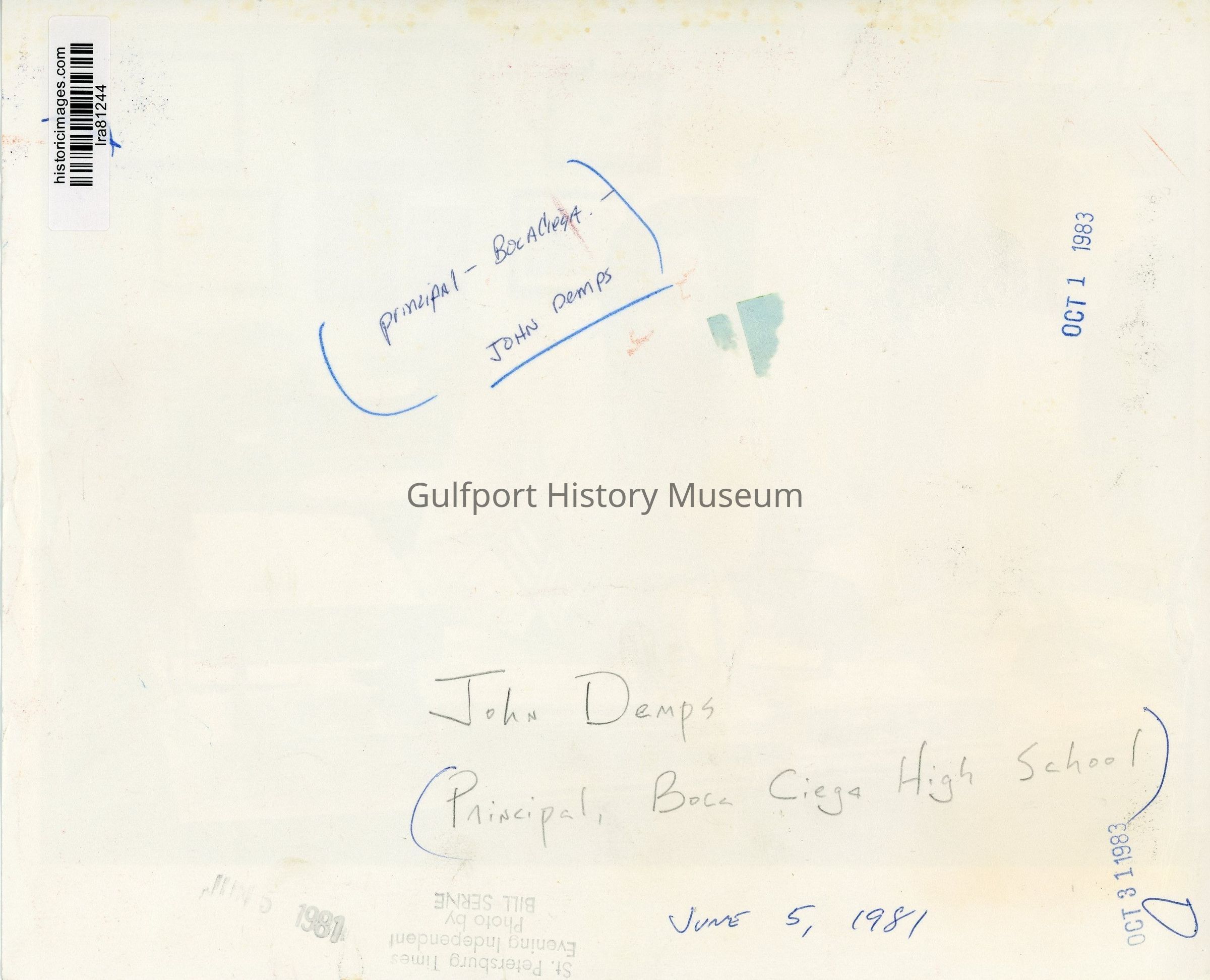 John C. Demps was Principal of Boca Ciega High School from 1976 to December 19, 1986.
