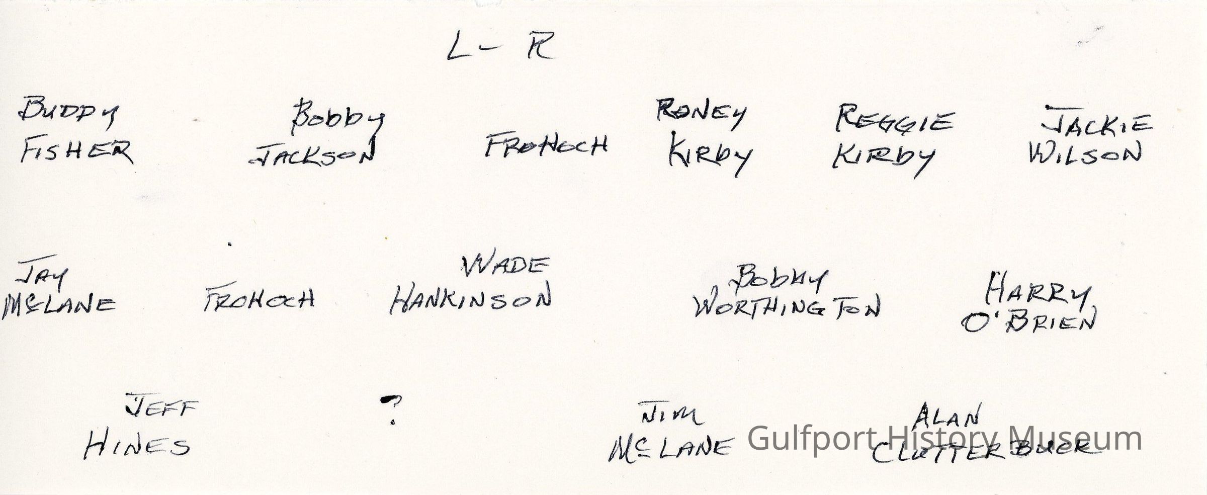 Buddy Fisher, Bobby Jackson, Frohoch, Roney Kirby, Reggie Kirby, Jackie Wilson