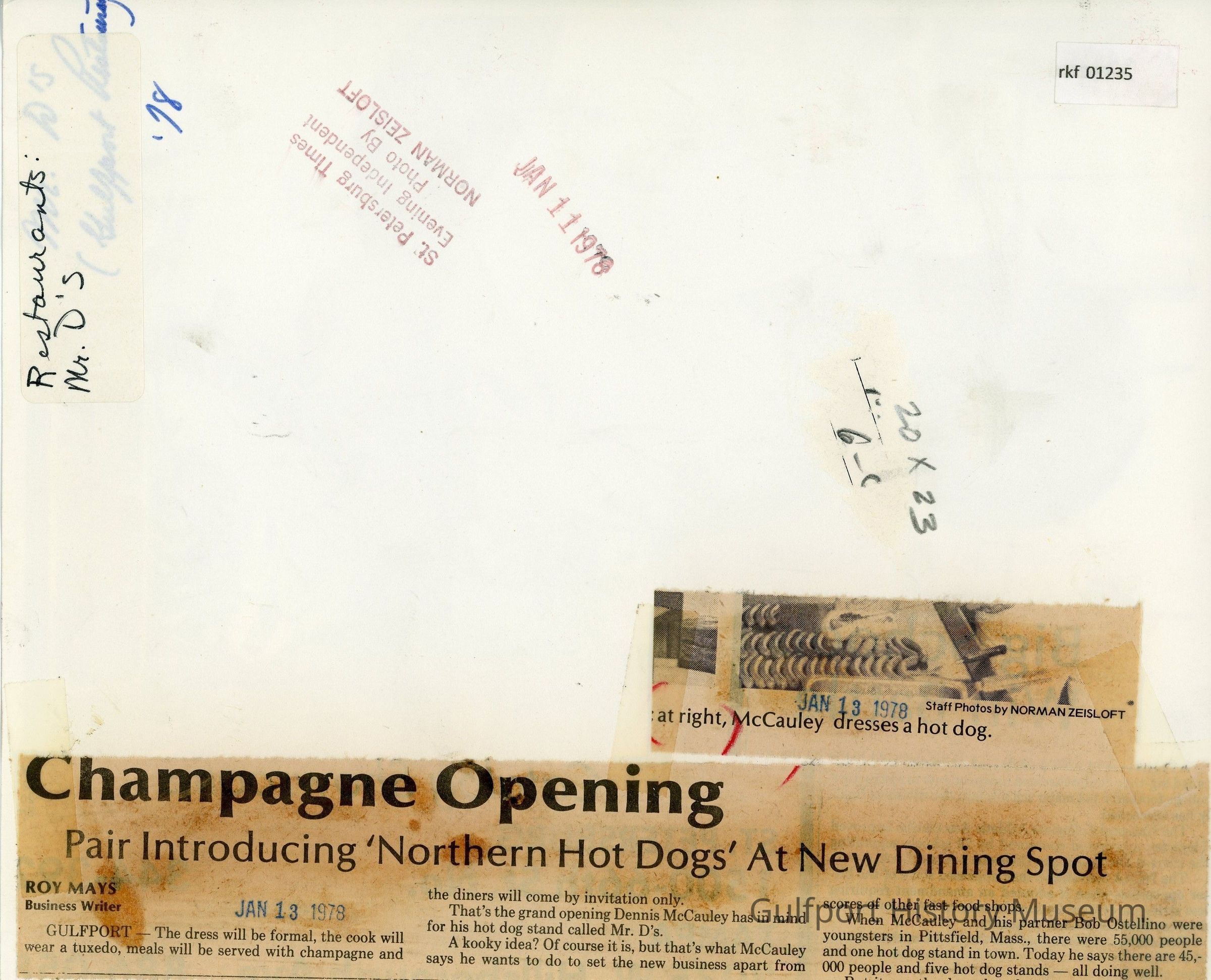 That's the grand opening Dennis McCauley has in mind for his hot dog stand called Mr. D's.