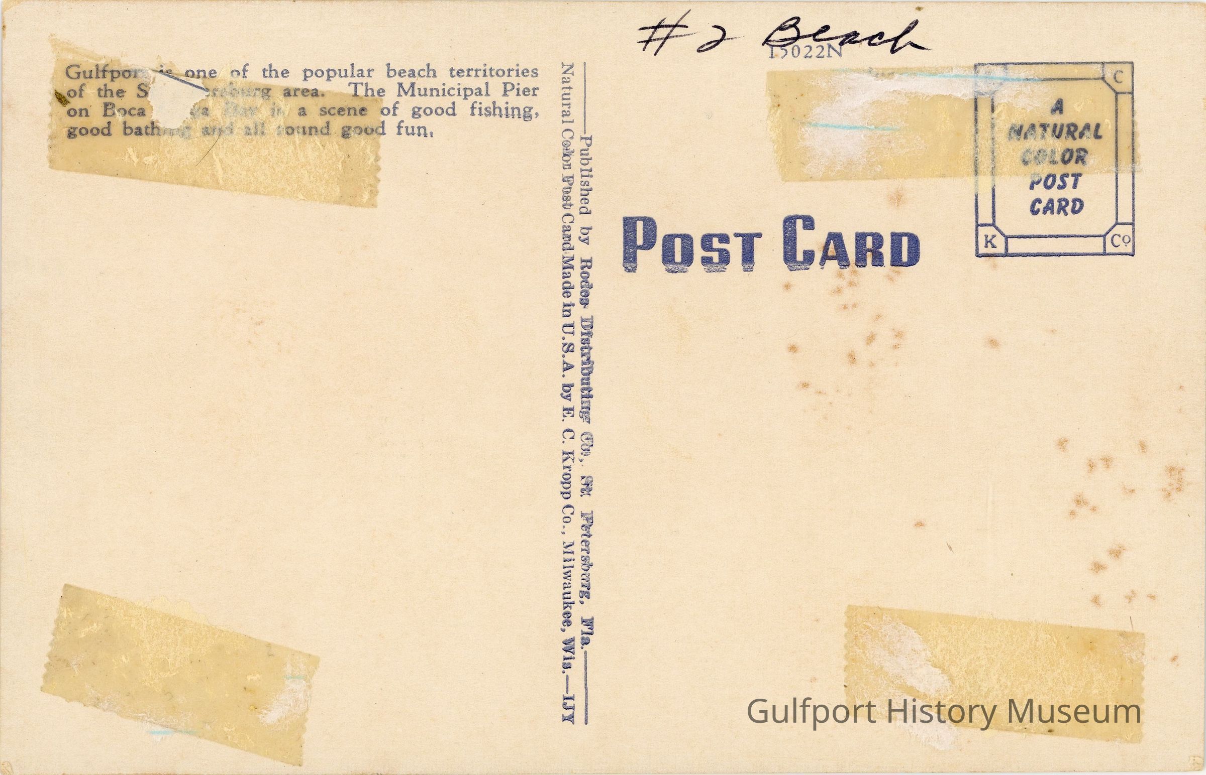 #2 Beach / Gulfport is one of the popular beach territories / of the St. Petersburg area. The Municipal Pier / on Boca Ciega Bay is a scene of good fishing, / good bathing and all round good fun.